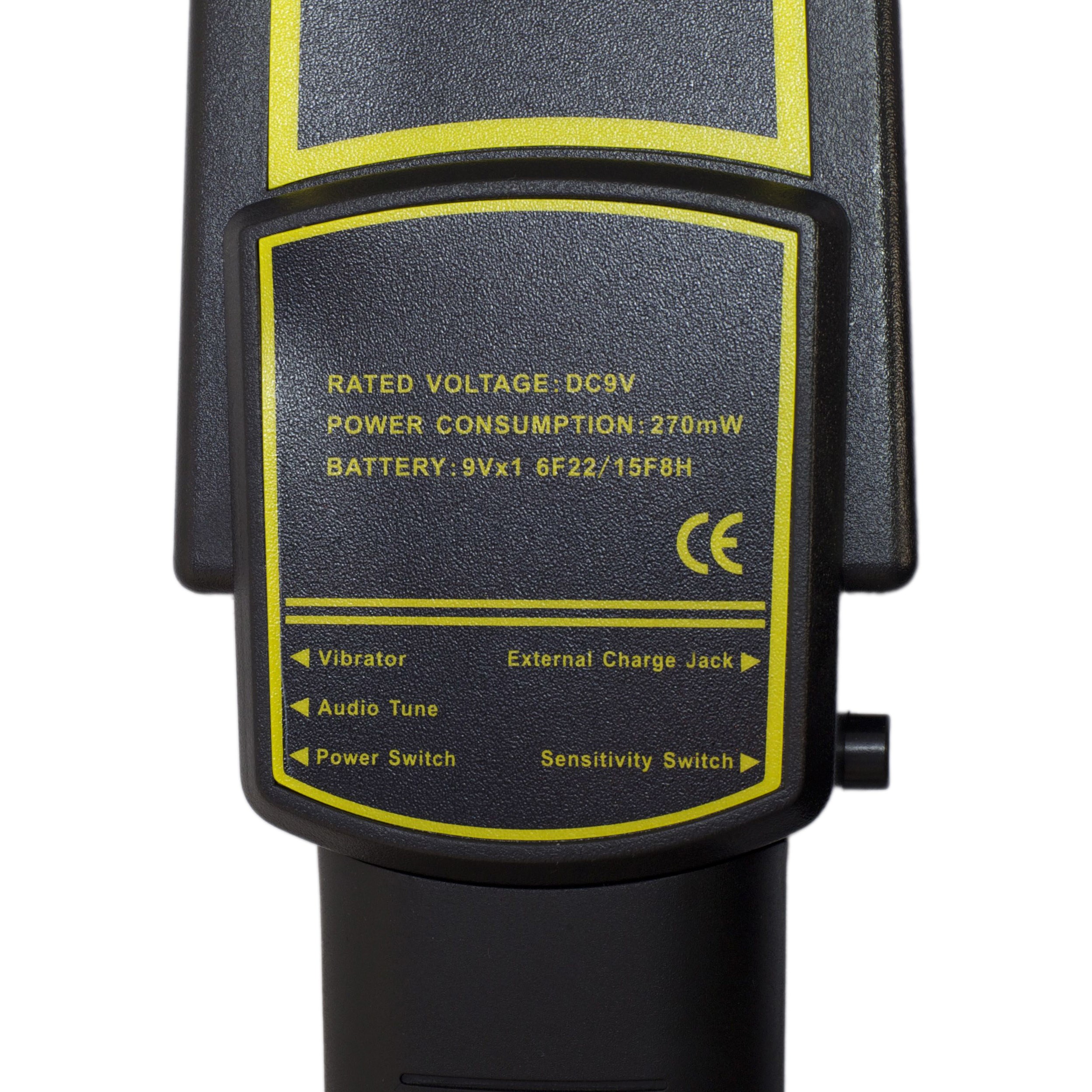 Reliable metal detector powered by a 9-volt battery (not included). Audio output or vibration. Compact dimensions - 420 x 76 x 38 mm, weight only 294 grams. Material - durable ABS plastic. Ulteriori informazioni