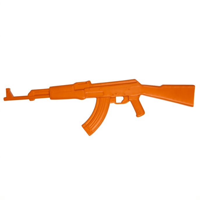 Fucile d'addestramento in gomma, fedele riproduzione del famoso fucile AK-47. Questo modello da addestramento è interamente in gomma e presenta al suo interno una barra metallica di rinforzo, che lo rende molto stabile. Per un addestramento più realistico, il peso dell'arma corrisponde a quello di un'arma vera e propria. Lunghezza del fucile: 85 cm