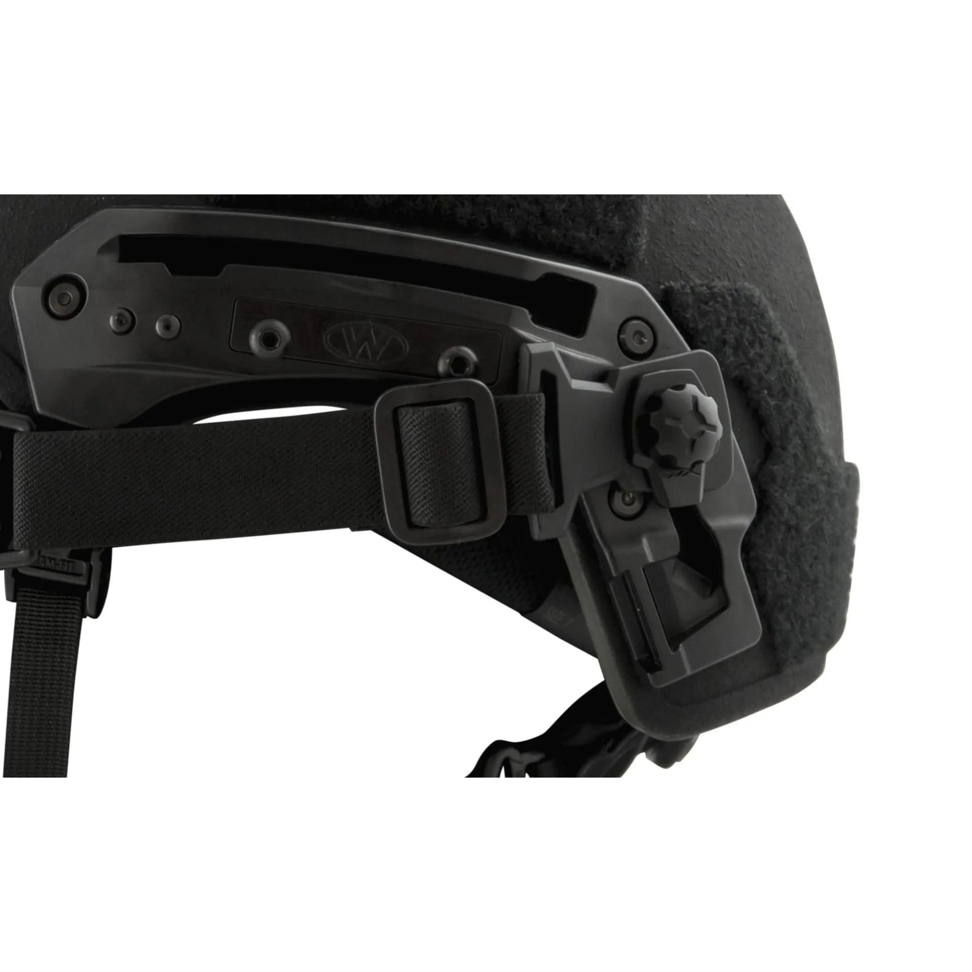 Sistema di montaggio RAS compatibile con gli occhiali SPEAR del marchio WILEY X. Questo sistema è progettato per caschi tattici con guide della ditta TEAM WENDY. Il sistema RAS è dotato di un dispositivo di sgancio di emergenza degli occhiali che si attiva quando la coppia supera gli 11 Nm, prevenendo lesioni alla testa e agli occhi nel caso in cui gli occhiali rimangano impigliati in elementi sporgenti circostanti. L'installazione non richiede l'uso di attrezzi.