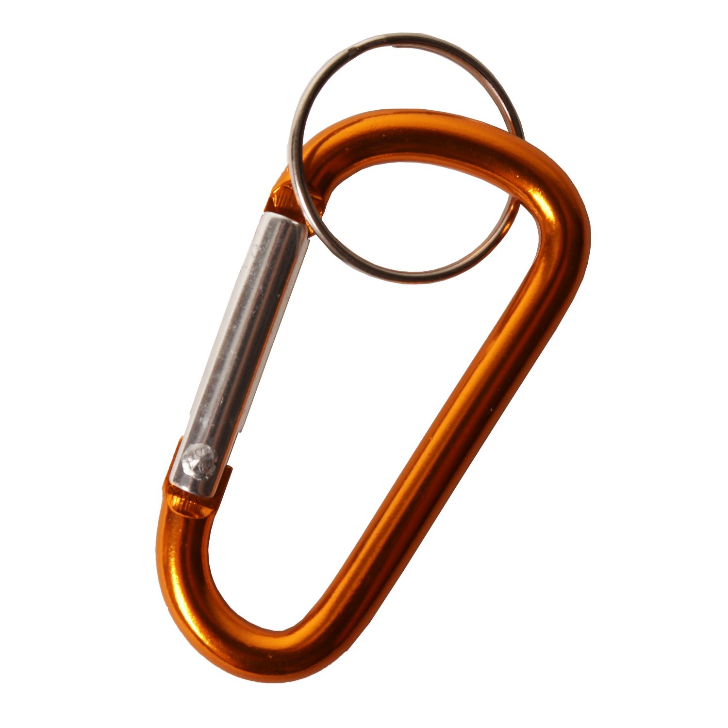 Moschettone metallico color oro con anello portachiavi. Leggero ma sufficientemente resistente. Altezza del moschettone: circa 6 cm.