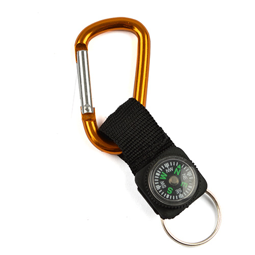 Moschettone in metallo da 5,8 cm con una piccola bussola funzionale e un anello portachiavi. Può essere utilizzato per agganciarlo allo zaino, al passante dei pantaloni, ecc. Il moschettone non deve essere utilizzato per l'assicurazione personale durante l'arrampicata.