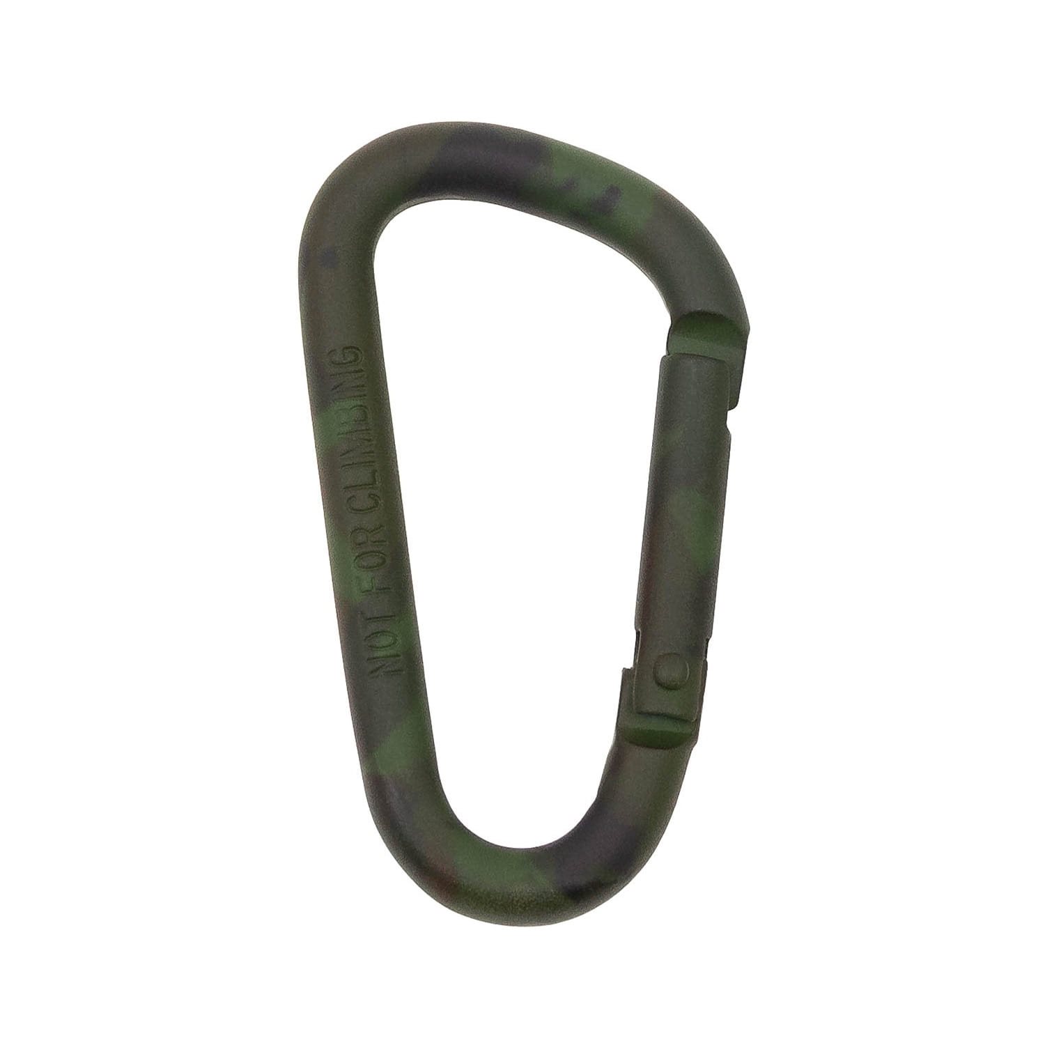 Moschettone in metallo con superficie mimetica. Per il fissaggio di attrezzature e altri accessori. Non è destinato alla sicurezza personale. Ulteriori informazioni