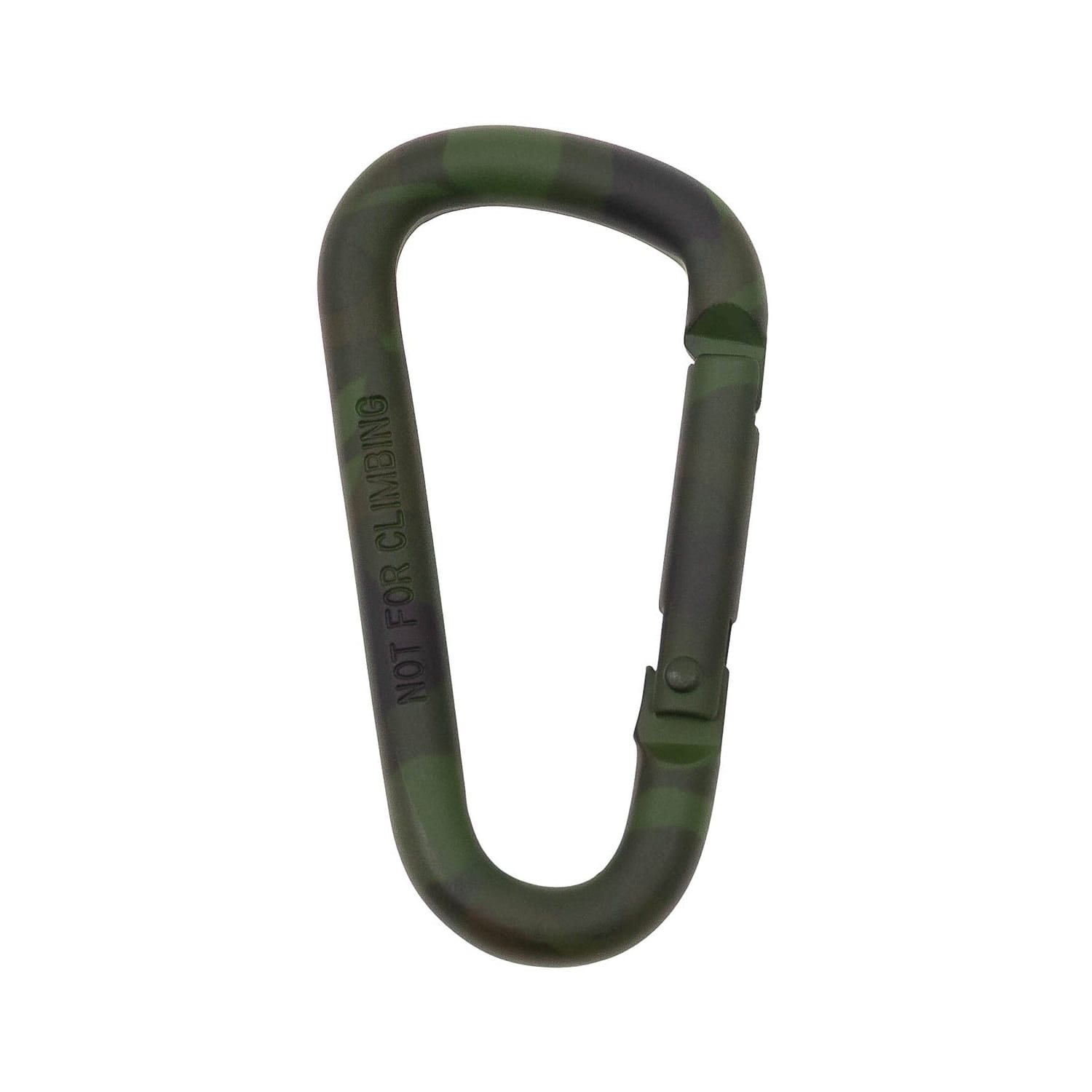 Moschettone in metallo con superficie mimetica. Per fissare l'attrezzatura e altri accessori. Non è destinato alla sicurezza personale. Non è destinato alla discesa in corda doppia e all'arrampicata.