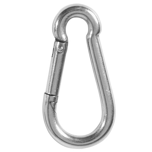 Moschettone in acciaio inossidabile senza sicura. Acciaio molto resistente. Progettato per appendere attrezzature e simili. Non è adatto per l'arrampicata e l'assicurazione personale.