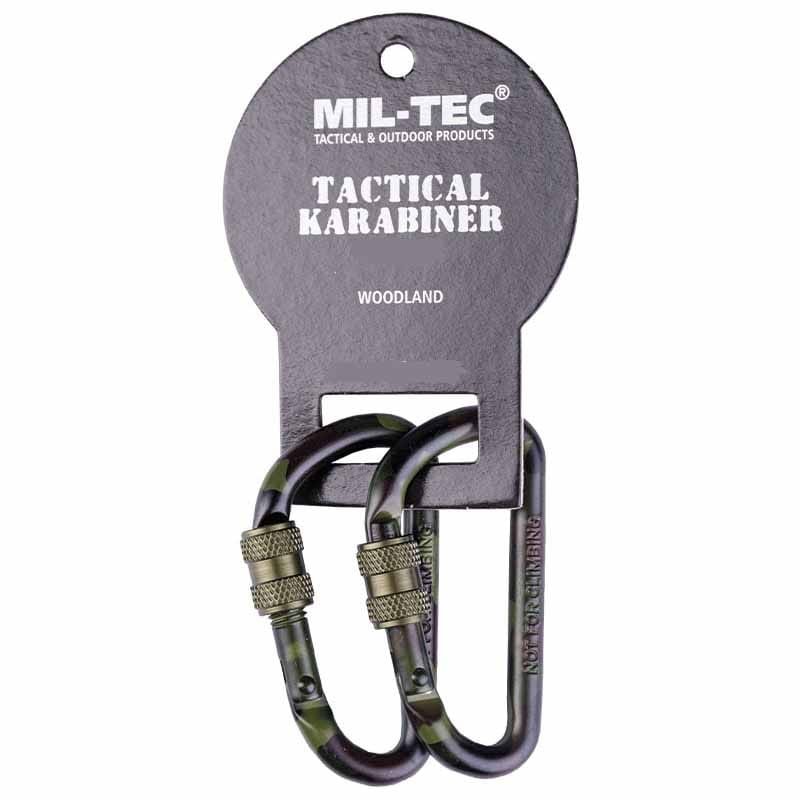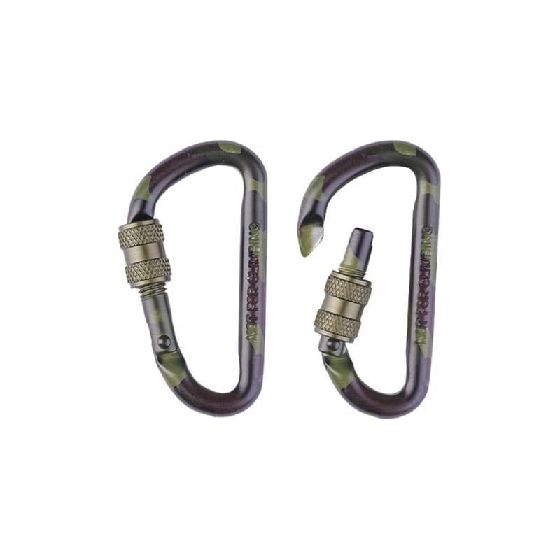 Moschettone mimetico woodland con diametro di 8 mm. Confezione da 2 pezzi. Non è destinato all'arrampicata, ma è un moschettone ausiliario per l'equipaggiamento. Ulteriori informazioni