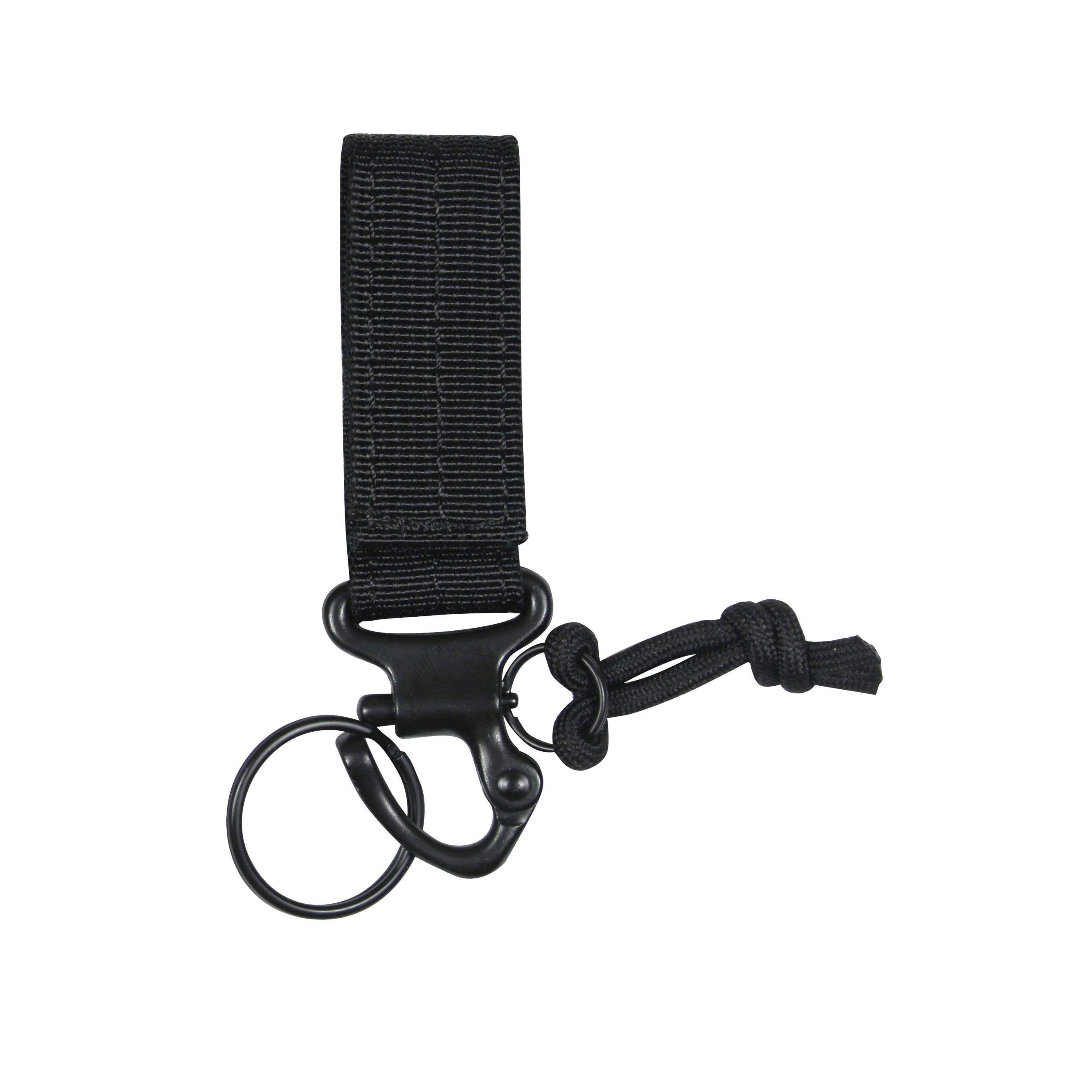Moschettone metallico con chiusura di sicurezza che consente un'apertura facile e veloce con una semplice trazione. Per il fissaggio al sistema MOLLE. Fornito con anello.
