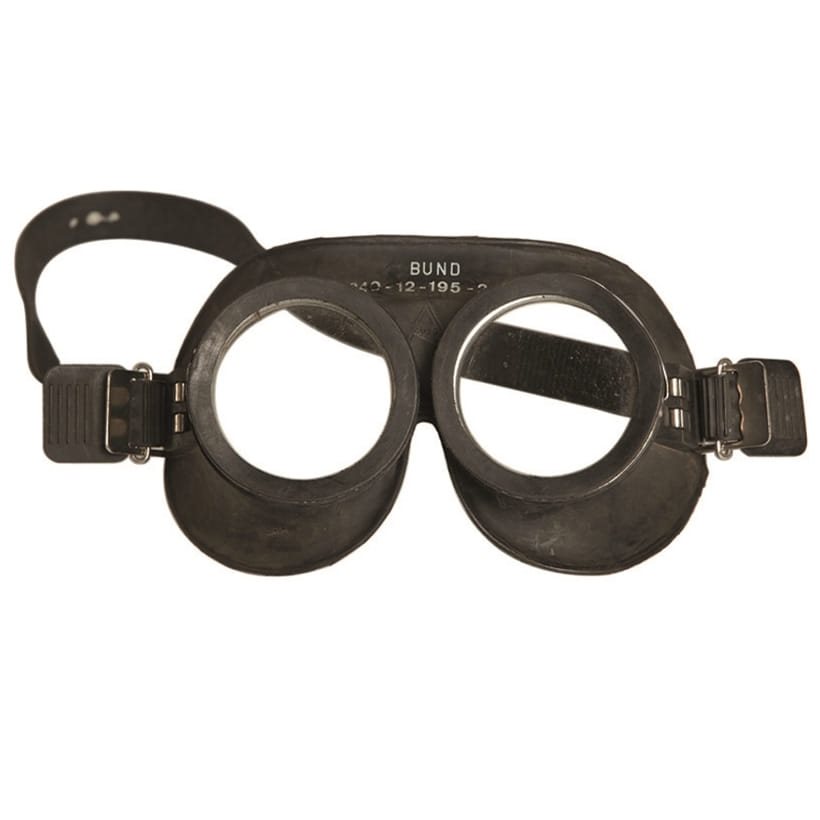 • Nuovi occhiali protettivi dell'esercito tedesco (Bundeswehr), originariamente progettati per proteggere da gas, polvere fine e acqua. Materiale: gomma