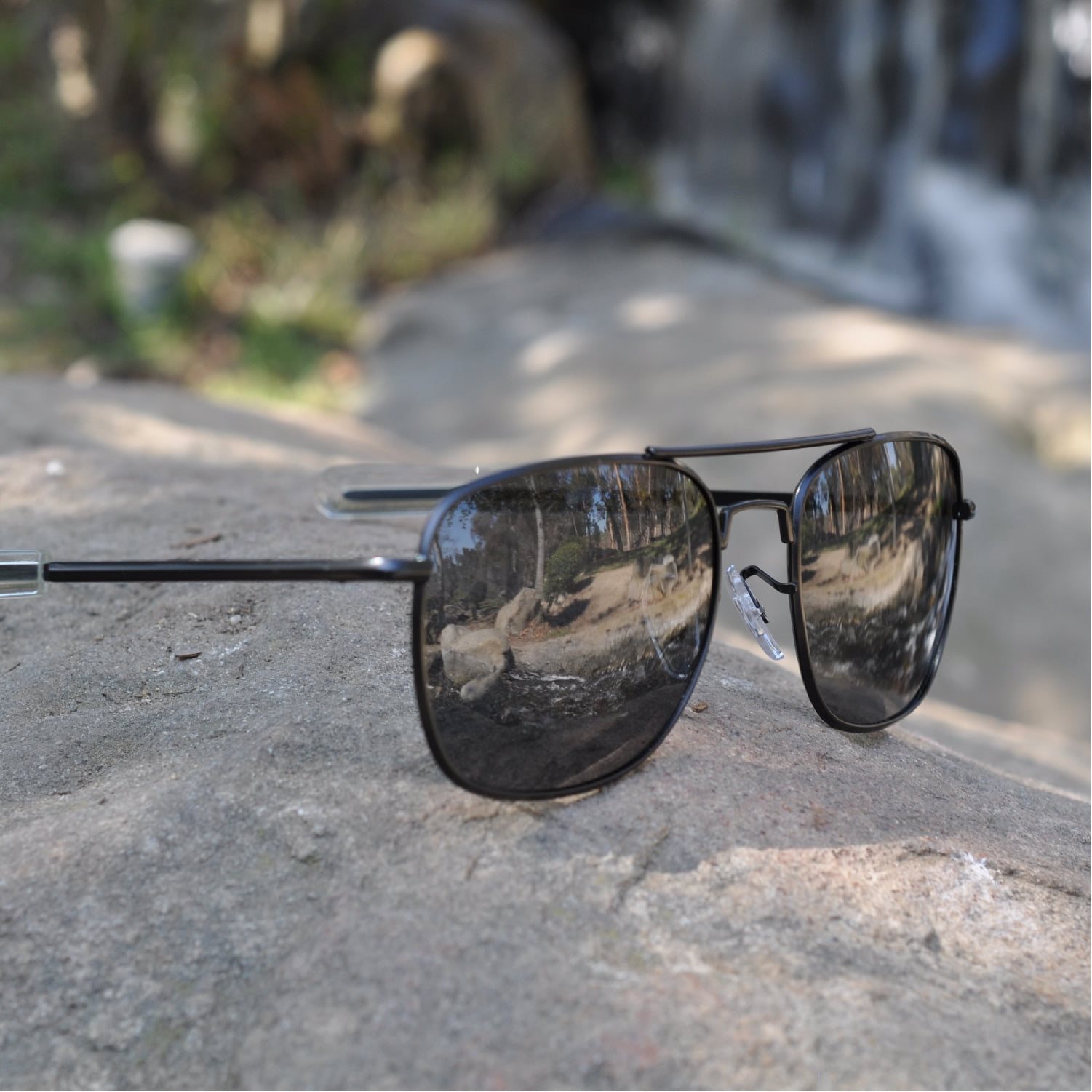 Occhiali da sole polarizzati con lenti fumé. Montatura in metallo opaco, aste flessibili, ponte confortevole. Protezione UV400. La confezione include una custodia in pelle nera con la scritta Humvee® e chiusura in velcro. Ulteriori informazioni