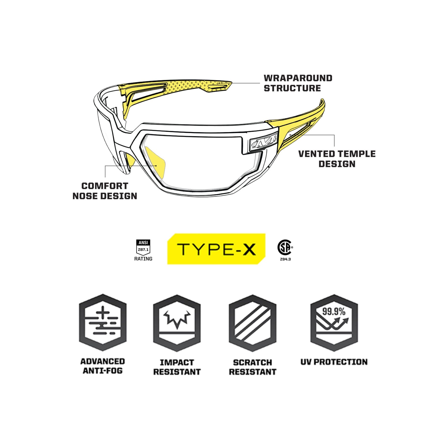 Occhiali protettivi dal design sportivo, caratterizzati da una montatura confortevole che avvolge saldamente il viso. Ulteriori informazioni