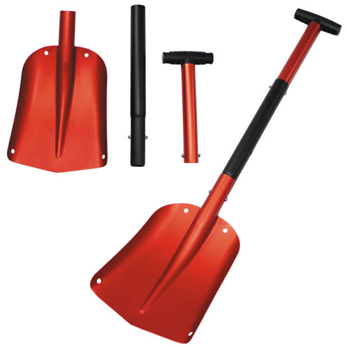 Pala da neve pieghevole. Modello leggero in alluminio anodizzato. La pala è composta da tre parti e il manico può essere regolato a 65 o 80 cm. Le dimensioni della pala sono 280x215 mm. Spessore della pala 1,7 mm. Peso circa 800 grammi. Ulteriori informazioni