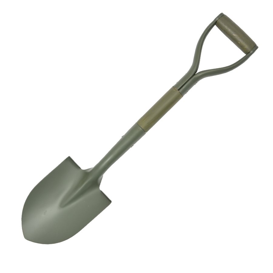 Robusta pala in acciaio per JEEP con inserto in legno nel manico e terminale a D.