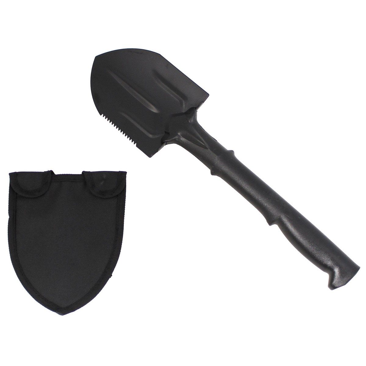 Pala rigida/zappa di dimensioni ridotte. Impugnatura in plastica, custodia in nylon che può essere fissata alla cintura.