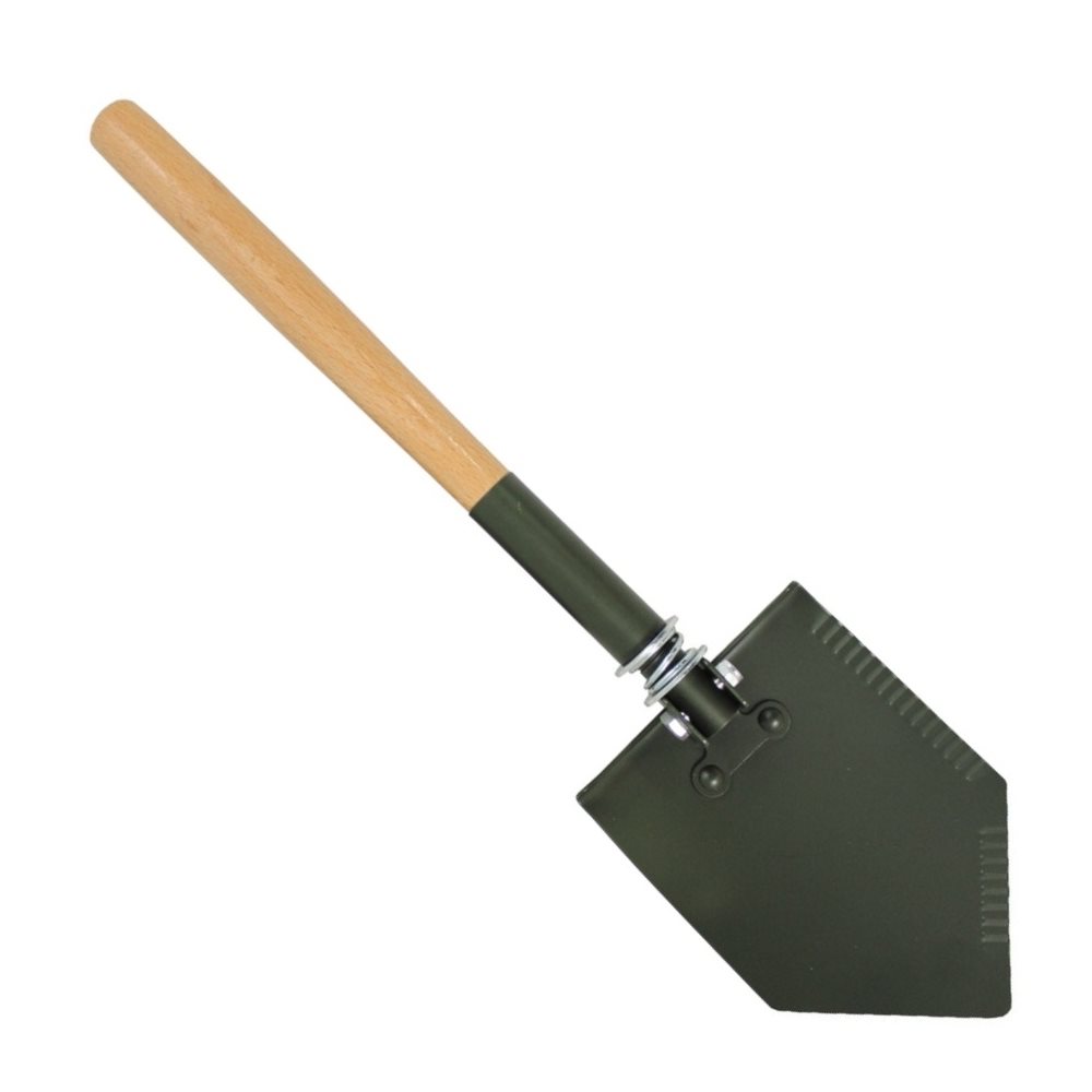 Classica pala da campo pieghevole con lama parzialmente dentellata.