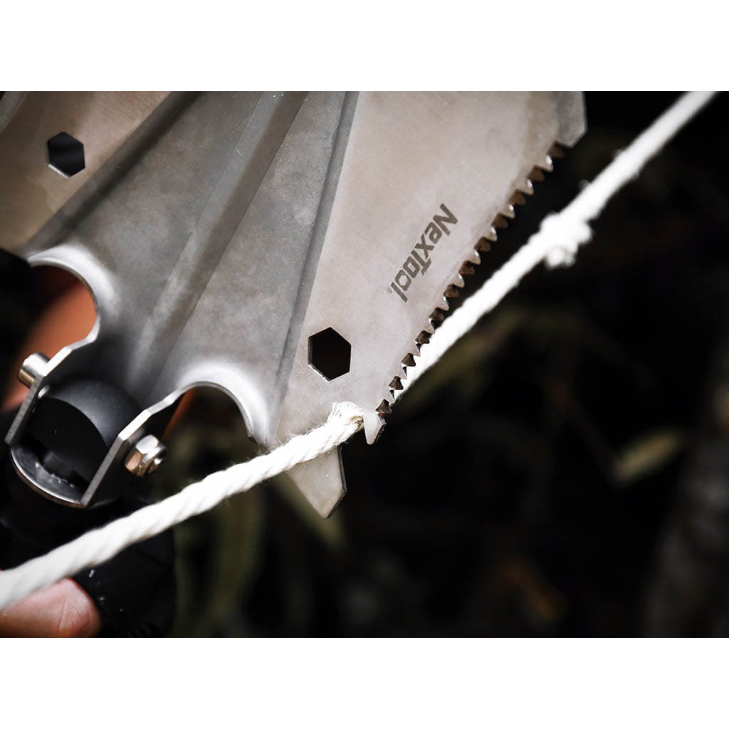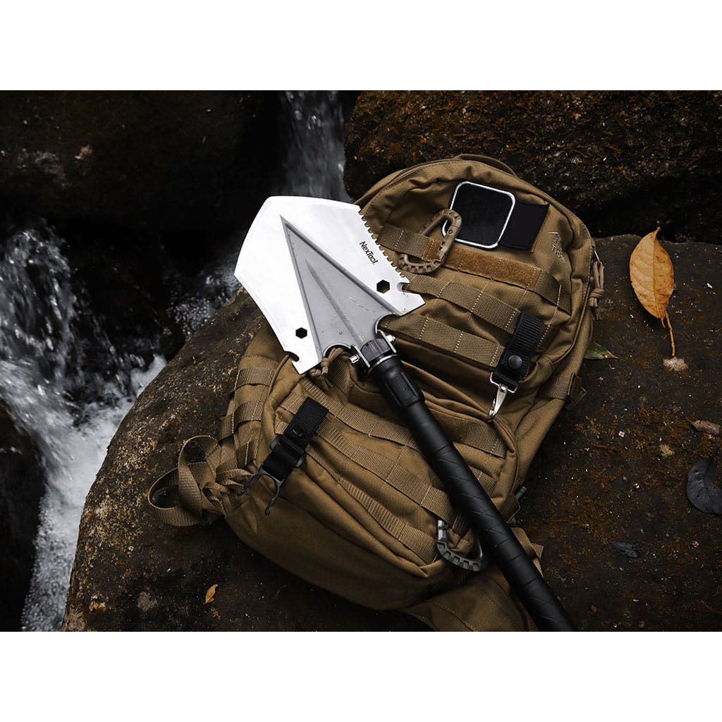 Strumento professionale per condizioni difficili, combina pala, piccone, gancio, sega, martello e altri strumenti di sopravvivenza in un unico corpo robusto. Ideale per soccorritori, campeggio, escursioni fuoristrada e situazioni di emergenza.