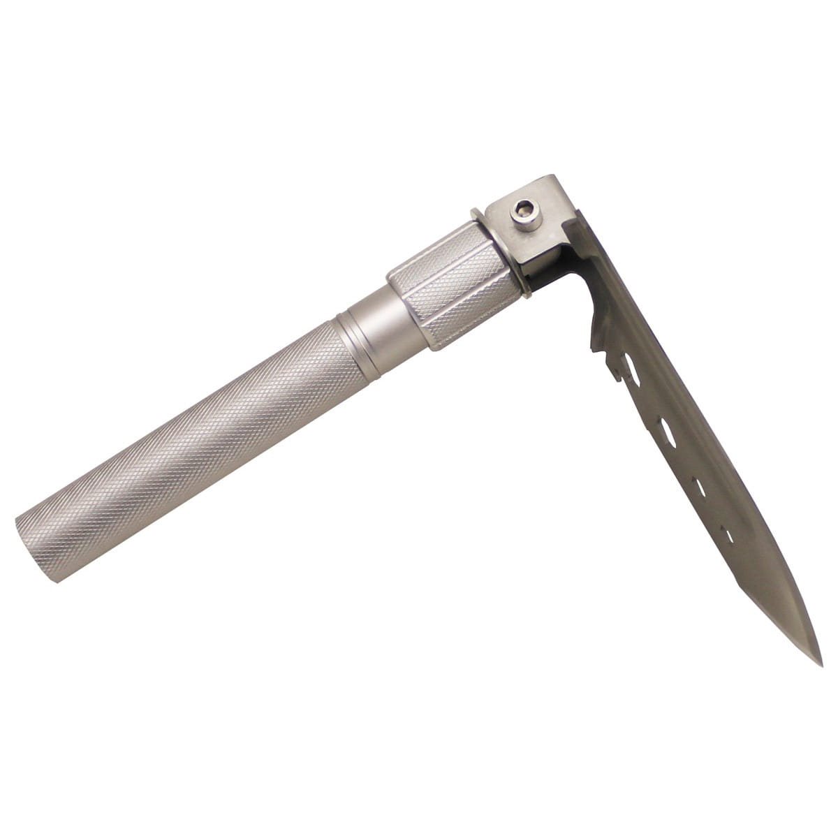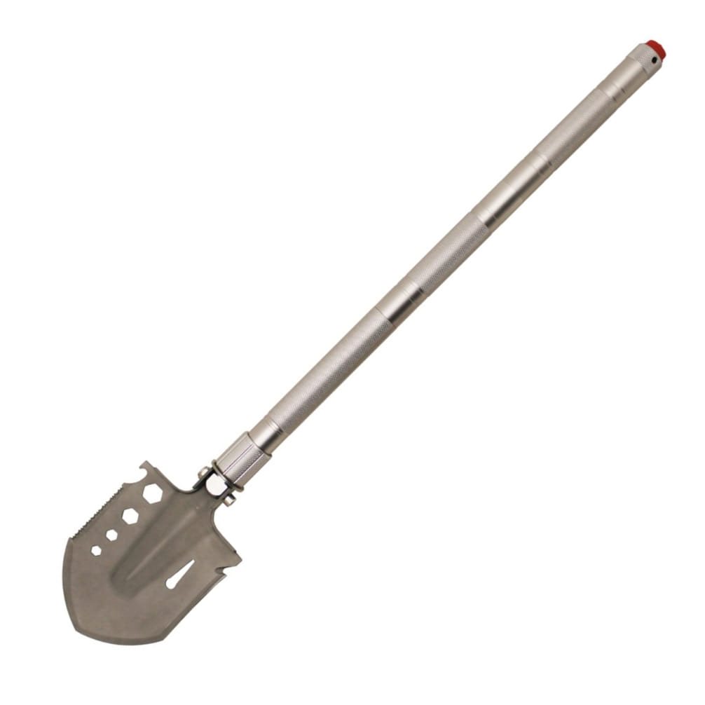 Strumento regolabile in lunghezza utilizzabile come pala, vanga, martello, accetta, ecc. La lama in acciaio inossidabile 2Cr13 è dotata di seghetto, taglierina, apribottiglie, ecc. Il manico è avvitabile e la lunghezza della pala può essere regolata in base alle esigenze. Il manico è dotato di un rompivetro. Lo strumento è fornito con un accessorio con coltello, un fischietto con accendino di emergenza, una coppia di cacciaviti e una pratica custodia che può essere trasportata a tracolla o agganciata alla cintura.