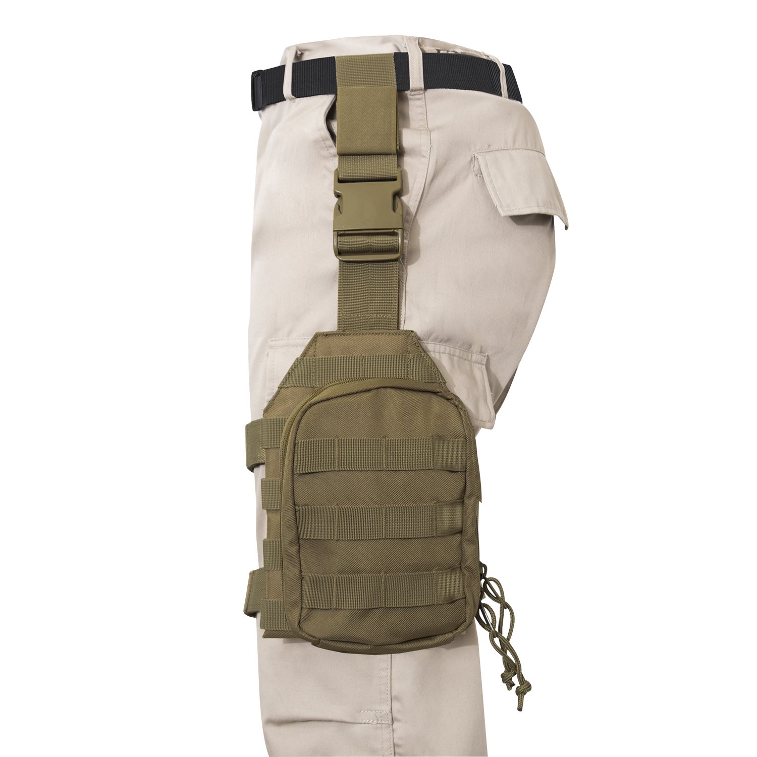 Pannello cosciale professionale con possibilità di regolazione facile e veloce delle cinghie interne di sostegno. È progettato per l'inserimento di fondine, tasche e caricatori compatibili con il sistema modulare PALS/MOLLE. Il pannello è realizzato in resistente poliestere 600D con finiture in PVC e fibbie in plastica.
