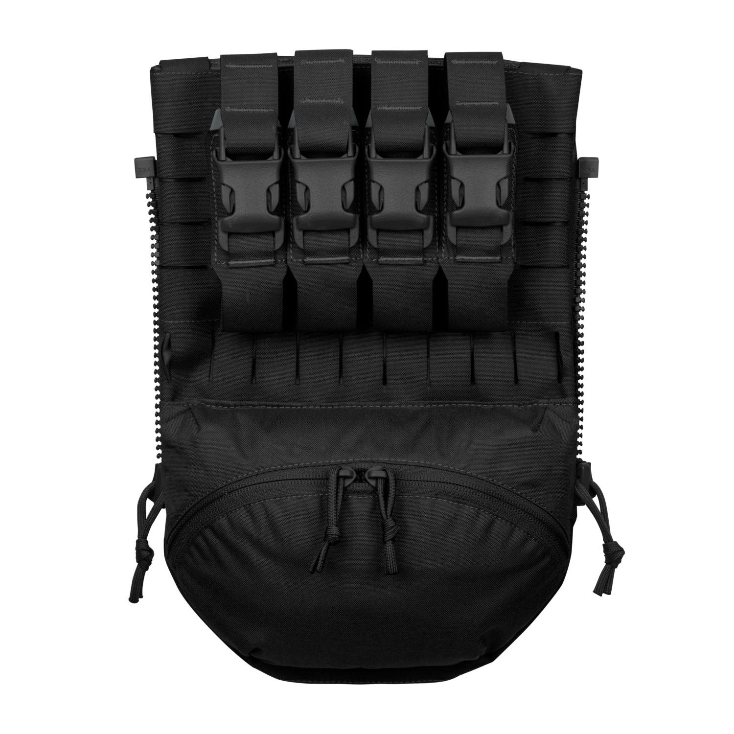 Pannello tattico posteriore progettato per l'integrazione nei supporti per piastre SPITFIRE® MK I e MK II o negli zaini HALIFAX® del marchio DIRECT ACTION. Il pannello è realizzato in una combinazione di laminato, nylon Cordura 500D e nylon 210D. La parte superiore del pannello è dotata di quattro tasche destinate allo stoccaggio di granate flash. Intorno alle tasche si trova un sistema di aggancio modulare standard MOLLE/PALS per la possibilità di espansione con attrezzature compatibili. La parte inferiore del pannello è costituita da una tasca relativamente capiente chiusa da una cerniera a doppio cursore. È foderata con morbido pile ed è quindi adatta per trasportare attrezzature più delicate come visori notturni, binocoli, ecc. L'ultimo vano portaoggetti si trova dietro il sistema di aggancio modulare. È adatto per riporre una sacca idrica o altra attrezzatura tattica.