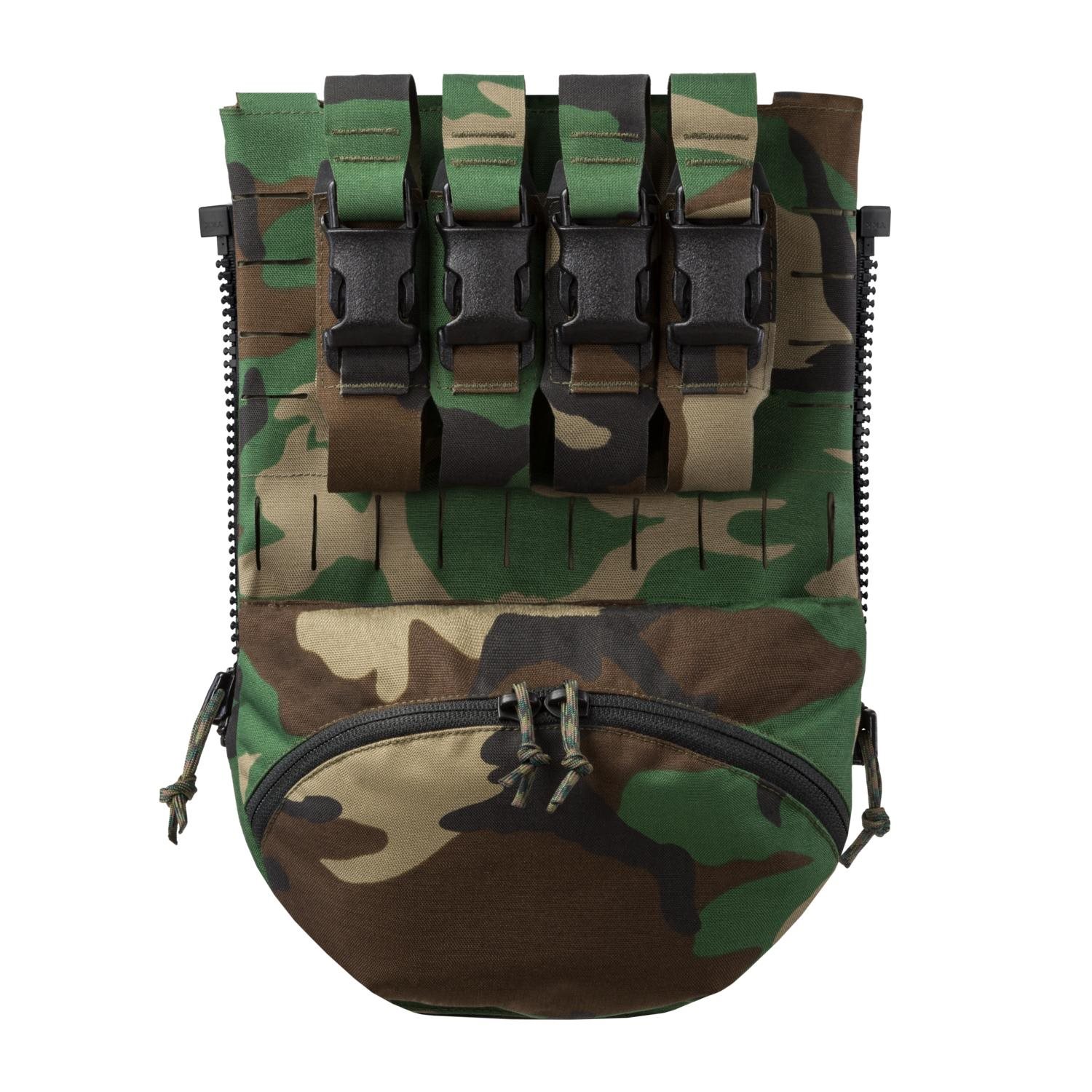 Pannello tattico posteriore progettato per l'integrazione nei supporti per piastre SPITFIRE® MK I e MK II o negli zaini HALIFAX® del marchio DIRECT ACTION. Il pannello è realizzato in una combinazione di laminato, nylon Cordura 500D e nylon 210D. La parte superiore del pannello è dotata di quattro tasche destinate allo stoccaggio di granate flash. Intorno alle tasche si trova un sistema di aggancio modulare standard MOLLE/PALS per la possibilità di espansione con attrezzature compatibili. La parte inferiore del pannello è costituita da una tasca relativamente capiente chiusa da una cerniera a doppio cursore. È foderata con morbido pile ed è quindi adatta per trasportare attrezzature più delicate come visori notturni, binocoli, ecc. L'ultimo vano portaoggetti si trova dietro il sistema di aggancio modulare. È adatto per riporre una sacca idrica o altra attrezzatura tattica.