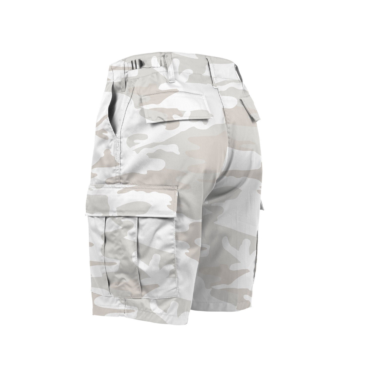 Pantaloncini di alta qualità e pratici in mimetico bianco, derivati dai pantaloni BDU (Battle Dress Uniform) dell'azienda americana Rothco. Rispetto ai pantaloncini di altri produttori, si distinguono per l'elevata stabilità dei colori. Sono molto comodi e adatti a diverse attività nelle calde giornate estive, compreso l'uso quotidiano civile. Consigliati per l'elevata qualità complessiva della lavorazione.