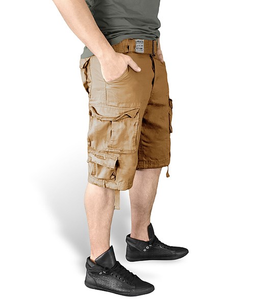 La chiusura dei pantaloncini è realizzata con la classica combinazione di bottone e cerniera metallica con tiretto in tessuto. La vita può essere ulteriormente stretta con i lacci interni. Le tasche hanno aperture oblique, bordi rinforzati con cuciture e sono sufficientemente profonde per riporre documenti, piccoli dispositivi elettronici e oggetti di valore. Sulle cosce sono presenti due grandi tasche cargo chiudibili con patta e bottoni a pressione. Queste tasche cargo sono inoltre dotate di "ribalte" in tessuto che, una volta inseriti gli oggetti, aumentano leggermente la capacità utile delle tasche. Sotto le tasche cargo si trovano taschine più piccole con patta e bottoni a pressione, ideali per riporre piccoli oggetti. L'ultima coppia di tasche si trova nella parte posteriore dei pantaloncini. Sono piuttosto capienti e si chiudono con patta e bottone a pressione. Il bordo inferiore delle gambe può essere stretto con lacci in tessuto. I pantaloncini sono dotati di una cintura in tessuto rigido larga 50 mm, che si allaccia con due passanti in metallo.