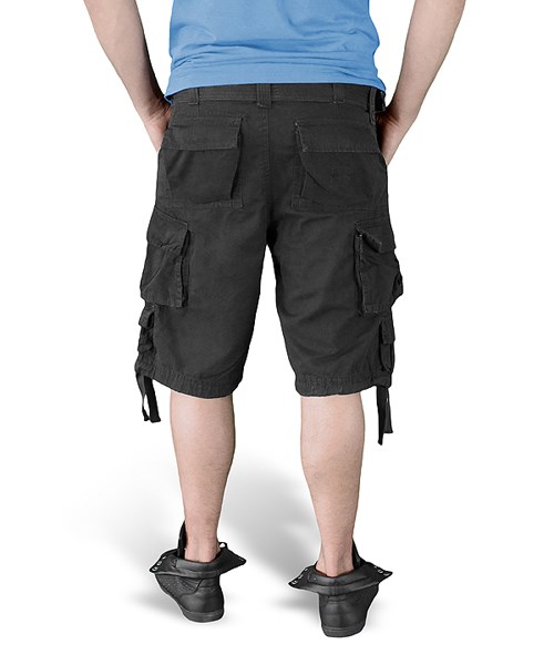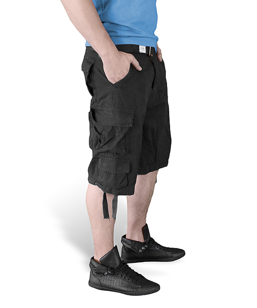 La chiusura dei pantaloncini è realizzata con la classica combinazione di bottone e cerniera metallica con tiretto in tessuto. La vita può essere ulteriormente stretta con i lacci interni. Le tasche hanno aperture oblique, bordi rinforzati con cuciture e sono sufficientemente profonde per riporre documenti, piccoli dispositivi elettronici e oggetti di valore. Sulle cosce sono presenti due grandi tasche cargo chiudibili con patta e bottoni a pressione. Queste tasche cargo sono inoltre dotate di "ribalte" in tessuto che, una volta inseriti gli oggetti, aumentano leggermente la capacità utile delle tasche. Sotto le tasche cargo si trovano taschine più piccole con patta e bottoni a pressione, ideali per riporre piccoli oggetti. L'ultima coppia di tasche si trova nella parte posteriore dei pantaloncini. Sono piuttosto capienti e si chiudono con patta e bottone a pressione. Il bordo inferiore delle gambe può essere stretto con lacci in tessuto. I pantaloncini sono dotati di una cintura in tessuto rigido larga 50 mm, che si allaccia con due passanti in metallo.