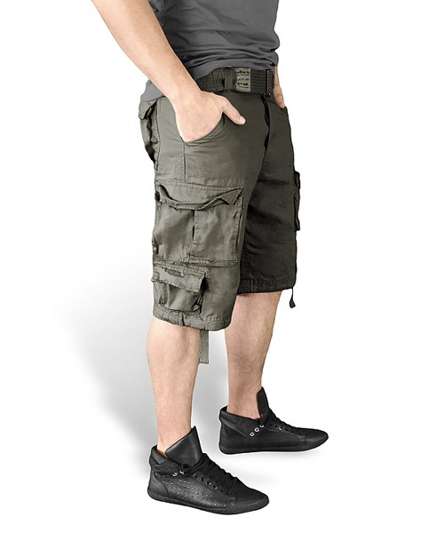 La chiusura dei pantaloncini è realizzata con la classica combinazione di bottone e cerniera metallica con tiretto in tessuto. La vita può essere ulteriormente stretta con i lacci interni. Le tasche hanno aperture oblique, bordi rinforzati con cuciture e sono sufficientemente profonde per riporre documenti, piccoli dispositivi elettronici e oggetti di valore. Sulle cosce sono presenti due grandi tasche cargo chiudibili con patta e bottoni a pressione. Queste tasche cargo sono inoltre dotate di "ribalte" in tessuto che, una volta inseriti gli oggetti, aumentano leggermente la capacità utile delle tasche. Sotto le tasche cargo si trovano delle taschine più piccole con patta e bottoni a pressione, ideali per riporre piccoli oggetti. L'ultima coppia di tasche si trova nella parte posteriore dei pantaloncini. Sono piuttosto capienti e si chiudono con patta e un bottone a pressione. L'orlo inferiore delle gambe può essere stretto con lacci in tessuto. I pantaloncini sono dotati di una cintura rigida in tessuto larga 50 mm, che si allaccia con due passanti in metallo.
