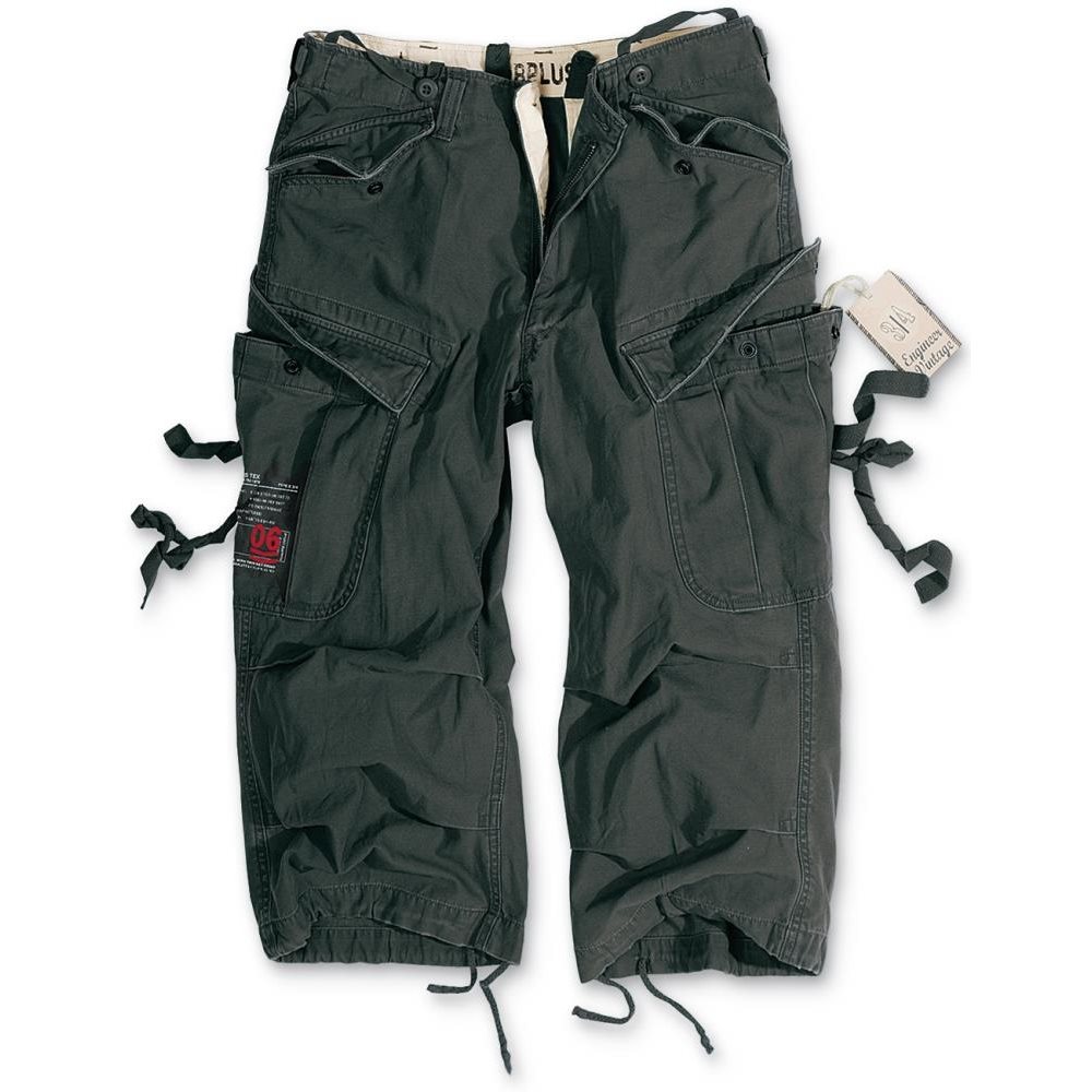 I pantaloni a tre quarti Surplus Engineer Vintage, molto apprezzati, si ispirano al modello di successo M65 con alcune piccole modifiche. Comodo taglio ampio con rinforzo in tessuto nella zona delle ginocchia. In vita, i pantaloni possono essere regolati con delle cinghie o con una cintura (fino a 5 cm). Le cinghie consentono di regolare i pantaloni anche nella zona delle cosce e dell'orlo inferiore delle gambe.