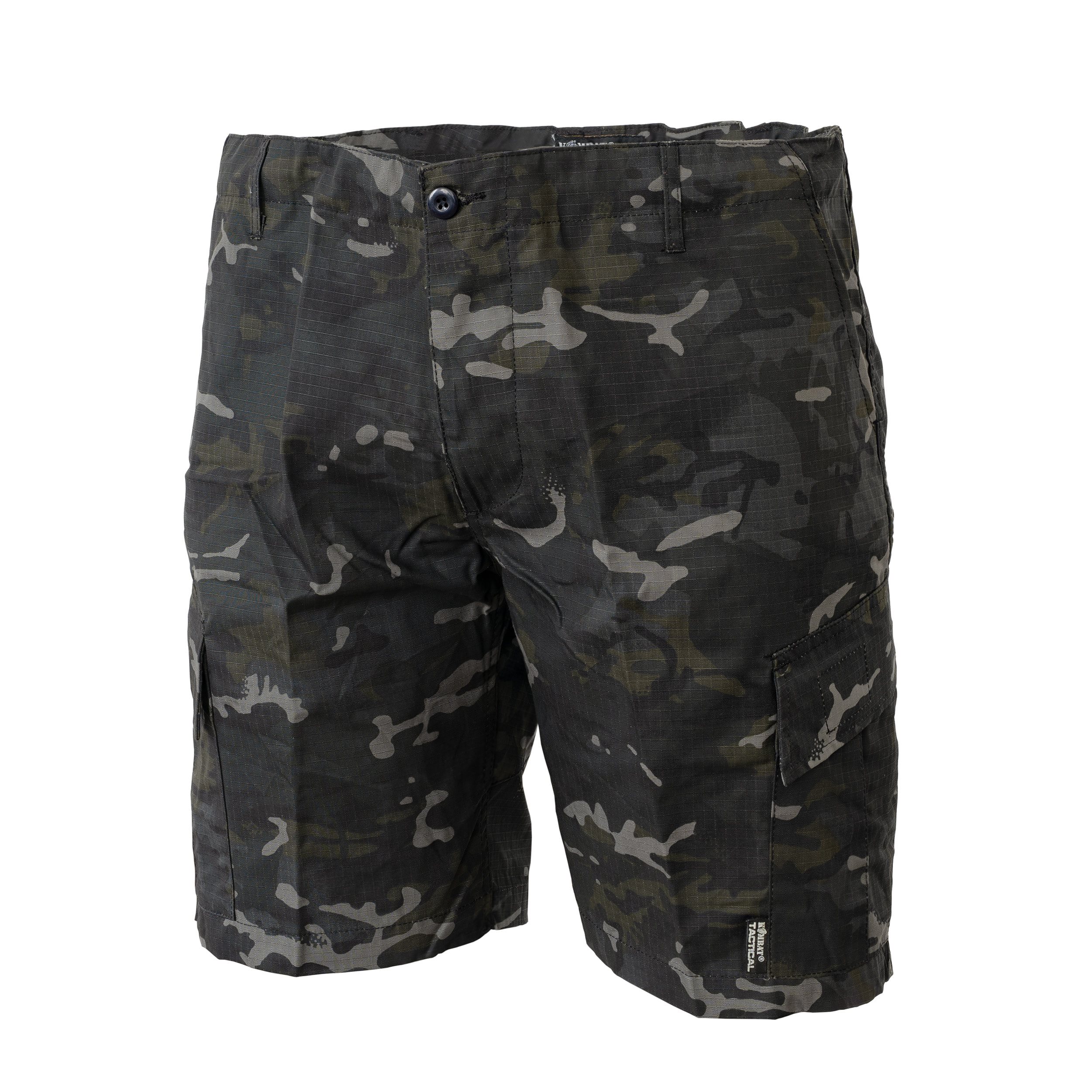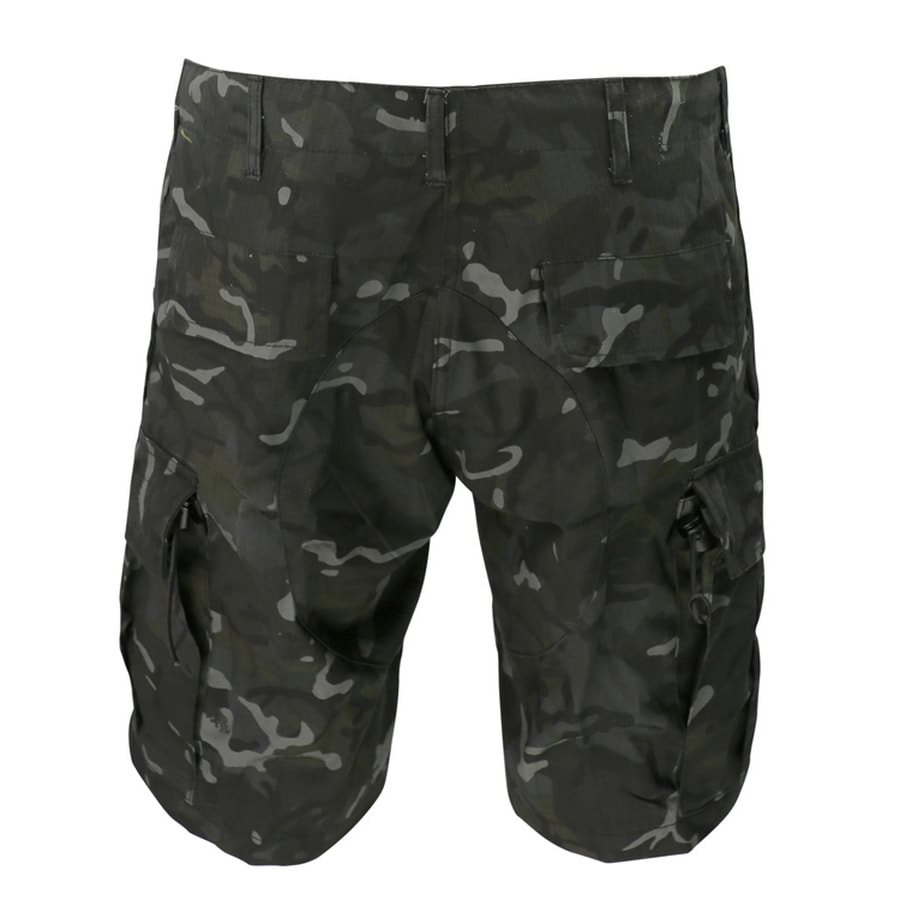 Comodi pantaloncini dal classico taglio ACU realizzati in resistente materiale rip-stop. La chiusura dei pantaloncini è assicurata da quattro bottoni, mentre la vita può essere regolata tramite un cordoncino interno. Per agganciare le cinture, sui pantaloncini sono cuciti cinque passanti. Le tasche sulle braccia hanno aperture oblique e sono abbastanza capienti da contenere piccoli oggetti o oggetti di valore. Le due tasche cargo sulle cosce sono molto capienti e possono essere chiuse con una patta con chiusura in velcro. L'ultima coppia di tasche con patta si trova sui glutei. Il sedere dei pantaloni è rinforzato con materiale di peso maggiore.