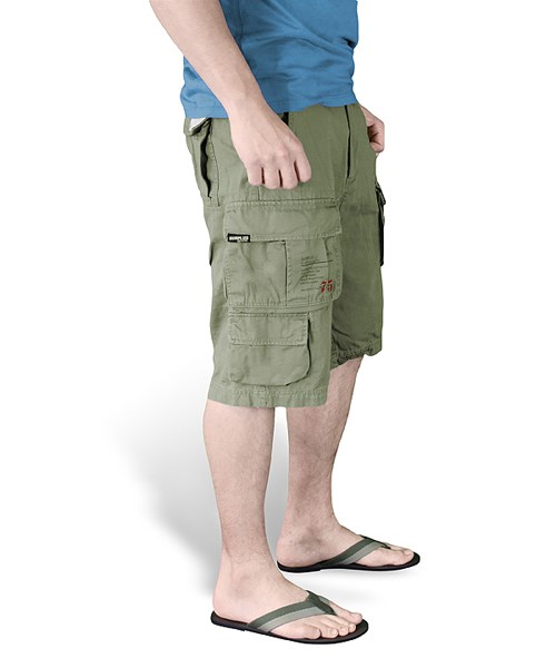 La chiusura è realizzata con la classica combinazione di cerniera metallica e bottone. Le tasche per le mani hanno aperture oblique e sono sufficientemente profonde per riporre piccoli oggetti e oggetti di valore. Sulle cosce sono presenti ampie tasche cargo chiudibili con patta e bottoni a pressione. Queste tasche possono contenere comodamente piccoli dispositivi elettronici, snack, ecc. Sotto la tasca cargo sinistra si trova inoltre una piccola tasca chiusa da una patta con bottoni a pressione. Anche le due tasche posteriori sono molto capienti e si chiudono con bottoni a pressione. I passanti dei pantaloncini possono contenere cinture larghe fino a 50 mm.