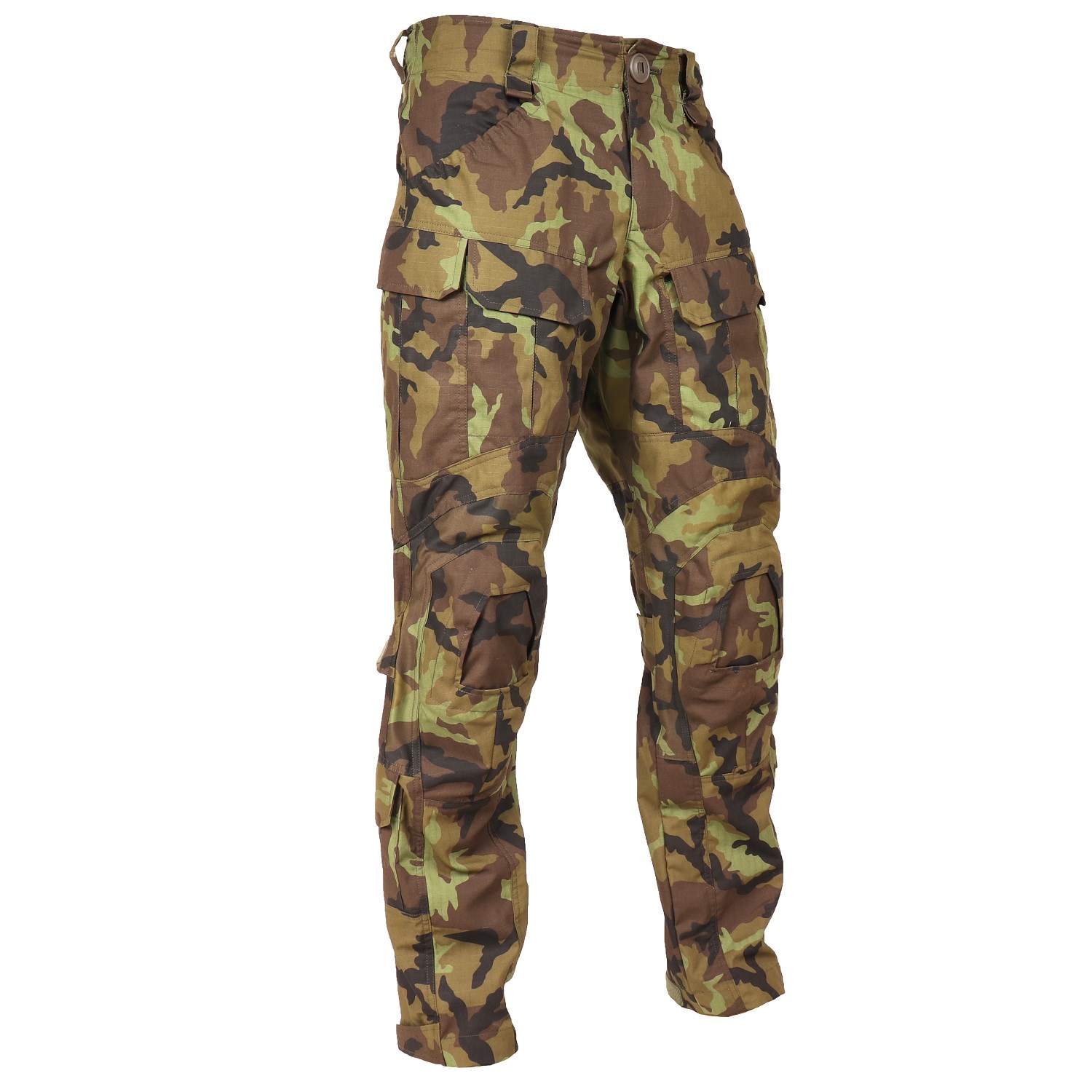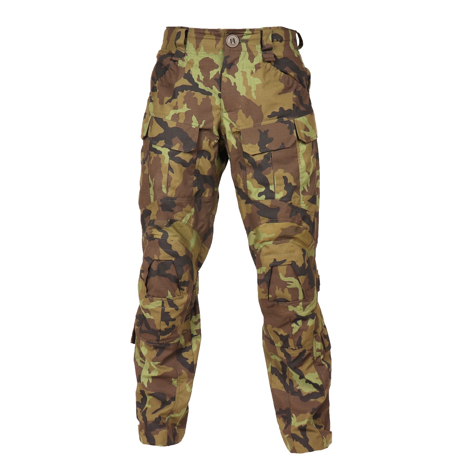 Pantaloni da combattimento progettati in collaborazione con membri delle forze speciali ceche. Modello collaudato con possibilità di inserire protezioni integrate per le ginocchia e tessuto elasticizzato nella zona delle ginocchia per garantire la massima libertà di movimento al soldato/utente.