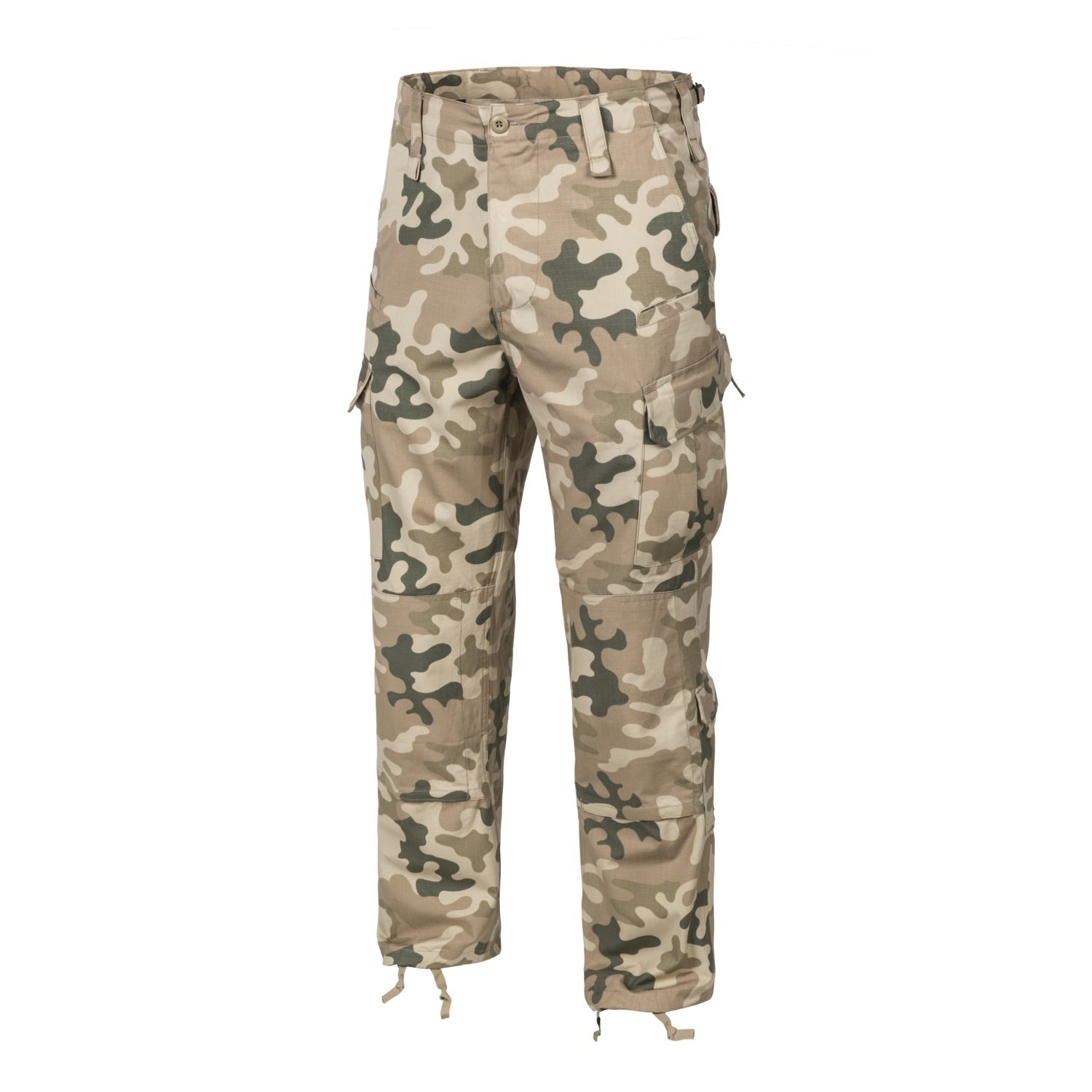 Stile CPU ® (Combat Patrol Uniform ®) basato sull'ultima uniforme militare polacca del 2010. I pantaloni presentano dieci tasche e tessuto rinforzato sul retro e sulle ginocchia con tasca interna per imbottitura. La misura della vita può essere regolata tramite cinturini laterali.