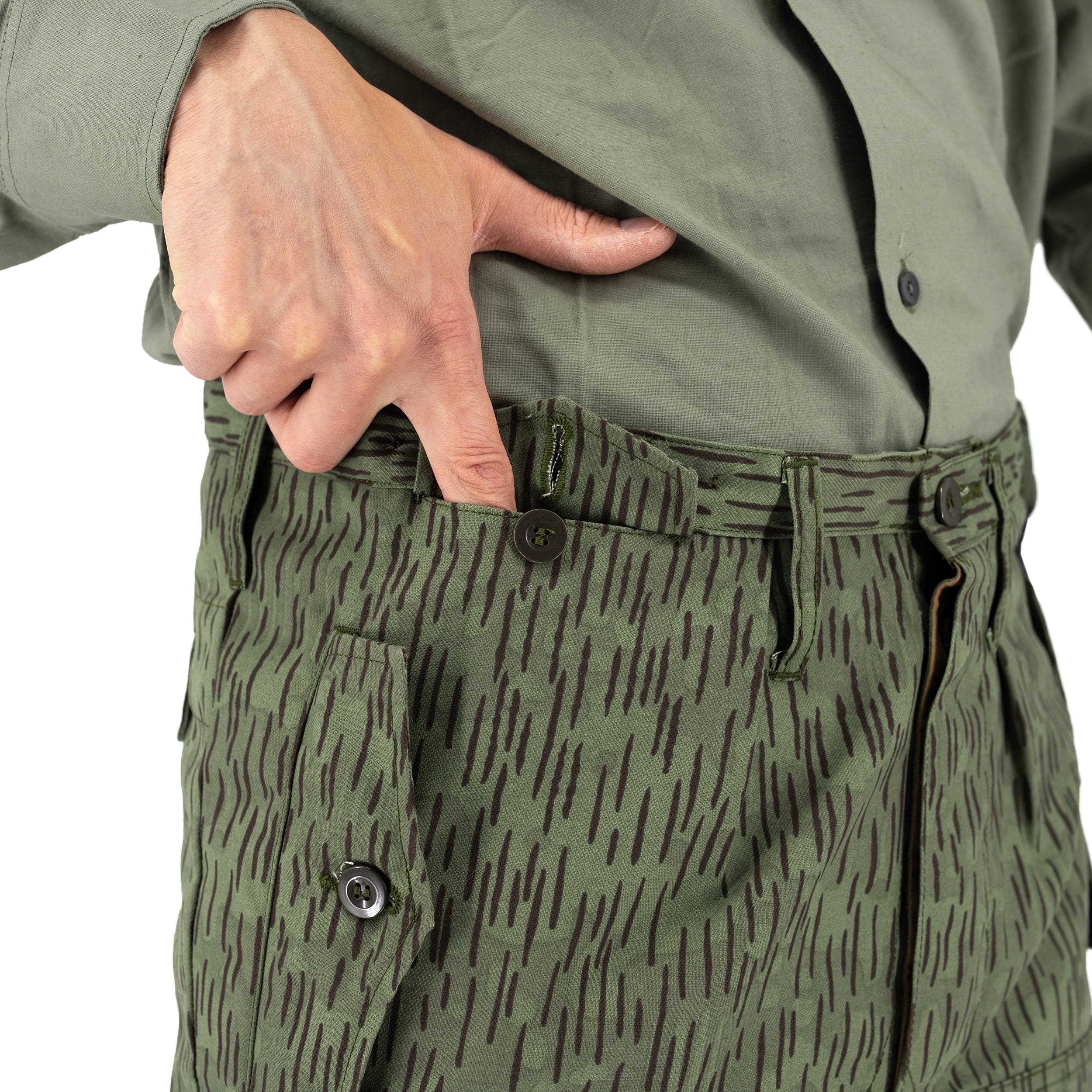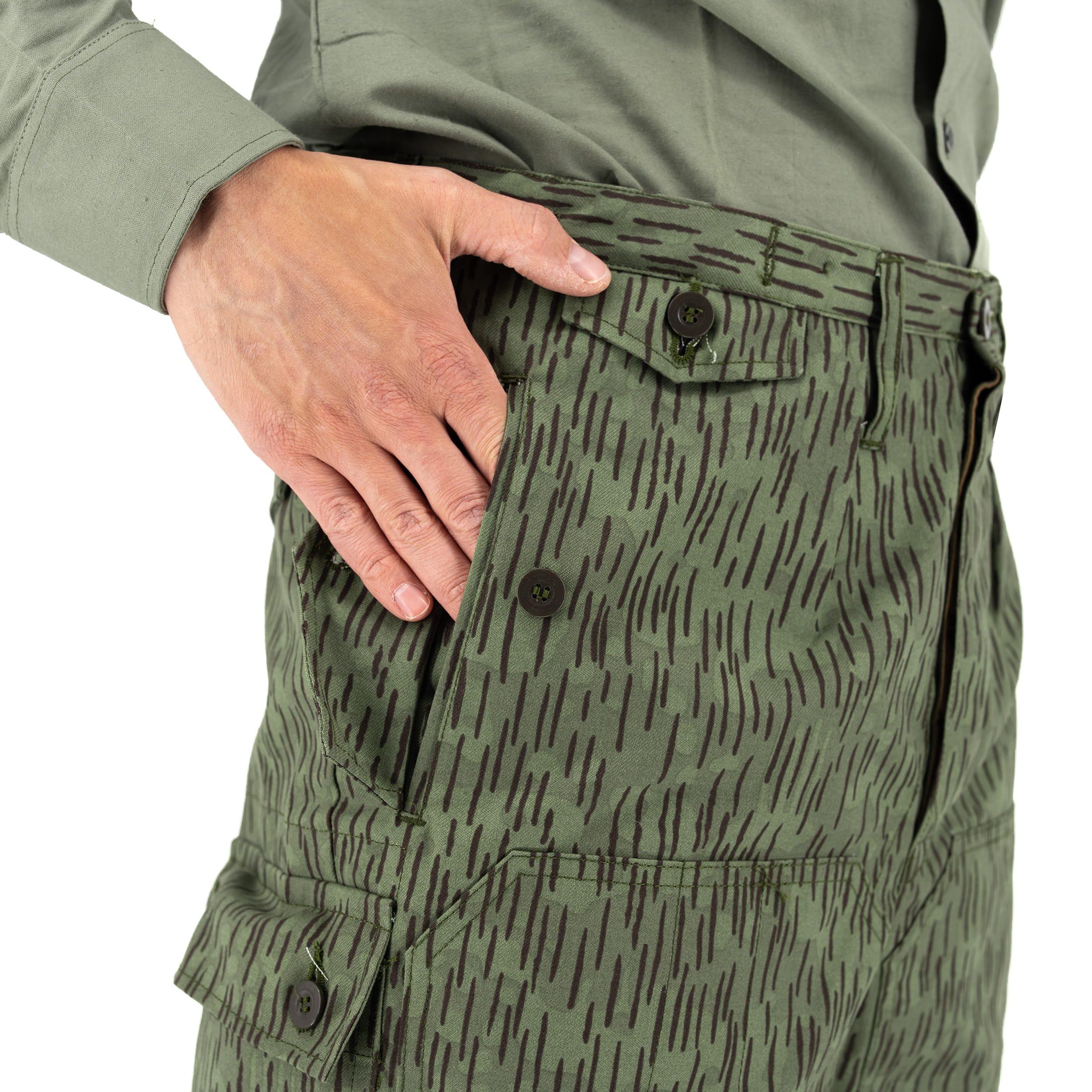 Pantaloni di nuova produzione realizzati secondo il modello originale dei pantaloni modello 60 utilizzati dai soldati dell'esercito popolare cecoslovacco. Si tratta di una nuova produzione secondo le specifiche dei pantaloni originali modello 60. Tutti i pantaloni sono nuovi e inutilizzati, realizzati in "qualità militare". Il produttore è la società TROPNER. I pantaloni hanno due tasche sui fianchi, una sul ginocchio destro e un'altra sul retro, tutte con chiusura a bottoni. Le estremità delle gambe sono rifinite con lacci. Sono dotati di rinforzi sulle ginocchia.