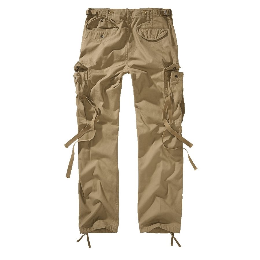 I pantaloni M65 Ladies sono i leggendari pantaloni militari dal taglio ampio in versione femminile. La seduta leggermente più profonda e le gambe allargate garantiscono un comfort ottimale. Tutte le tasche sono coperte da patte chiuse con bottoni a pressione, ad eccezione delle due tasche laterali a filetto in vita. Proprio come nella versione da uomo, anche questi pantaloni hanno eleganti cinturini lunghi fissati alle tasche laterali. Ogni ragazza che ha superato il duro addestramento da paracadutista sa esattamente a cosa servono. Le altre possono infilarli all'interno o lasciarli liberamente penzolare dietro la tasca. Le due piccole tasche posteriori valorizzano il fondoschiena di ogni donna. Il lavaggio durante la produzione conferisce a ogni paio di pantaloni un aspetto unico. - Cordoncini di chiusura sul fondo delle gambe. Cinghie per regolare la circonferenza in vita. Bottoni per fissare le bretelle. Rinforzo del tessuto nella zona delle ginocchia.
