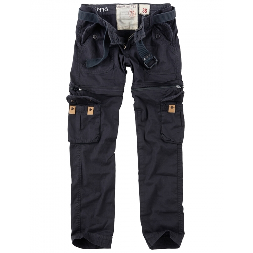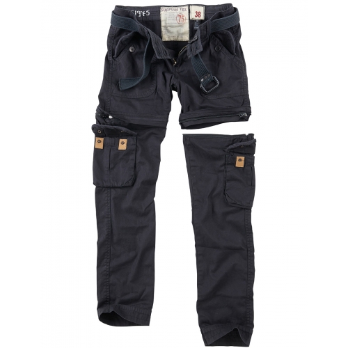 Modello da donna con taglio stretto delle gambe, secondo le tendenze moderne. Dalla ditta tedesca Surplus. Con una cerniera questi pantaloni possono essere trasformati in pantaloncini da donna.