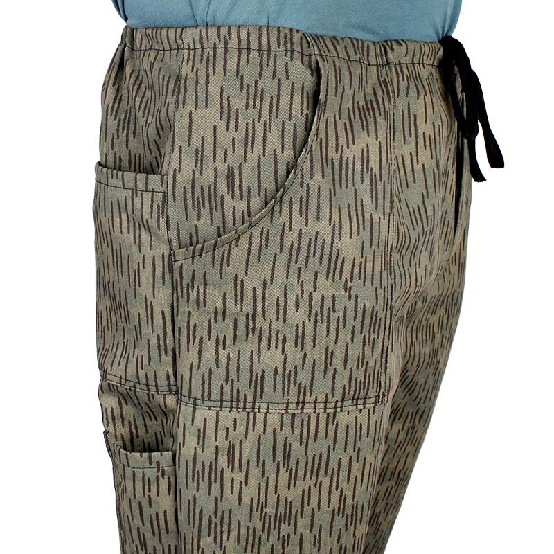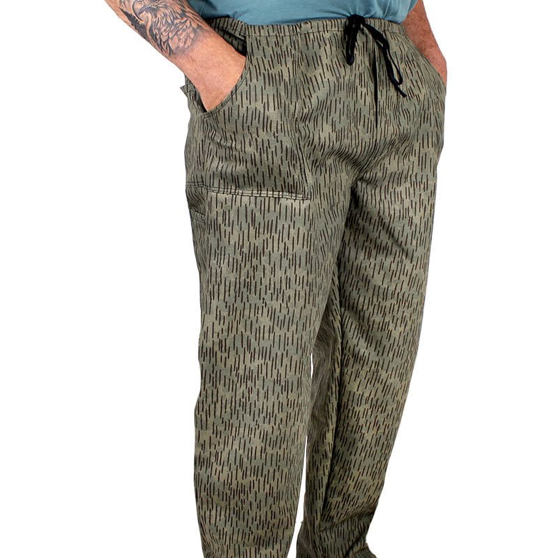 Pantaloni mimetici da uomo dal taglio classico, con coulisse in vita. Realizzati in resistente tessuto twill. Presentano due tasche anteriori, una posteriore e una più piccola sul fianco. Ulteriori informazioni