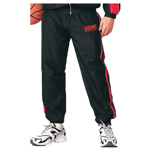 Scritta USMC THE FEW, THE PROUD ricamata in rosso. Pantaloni della tuta neri con striscia riflettente rossa. Cintura con coulisse. Materiale: poliestere/cotone. Ulteriori informazioni