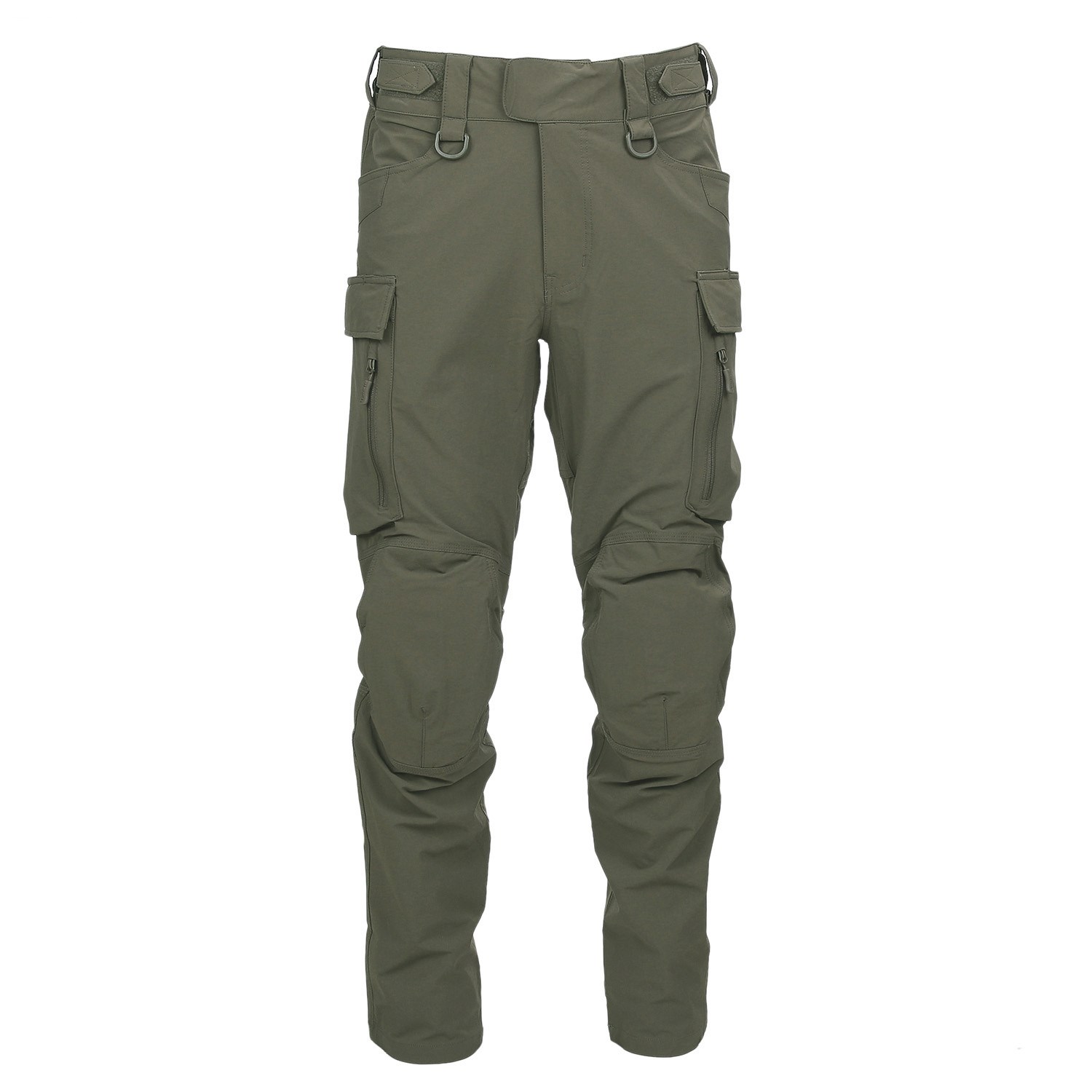 I pantaloni dispongono di un totale di dieci tasche. Le due tasche laterali sono profonde e dotate di bordi rinforzati. Sotto le tasche laterali si trovano ampie tasche cargo chiudibili con patta e velcro. Queste tasche sono inoltre dotate di taschine piatte chiudibili con cerniera sul lato esterno e di due tasche per caricatori AR/AK sul lato interno. Le tasche posteriori sono piatte, possono contenere comodamente il portafoglio e sono accessibili tramite una semplice cerniera.