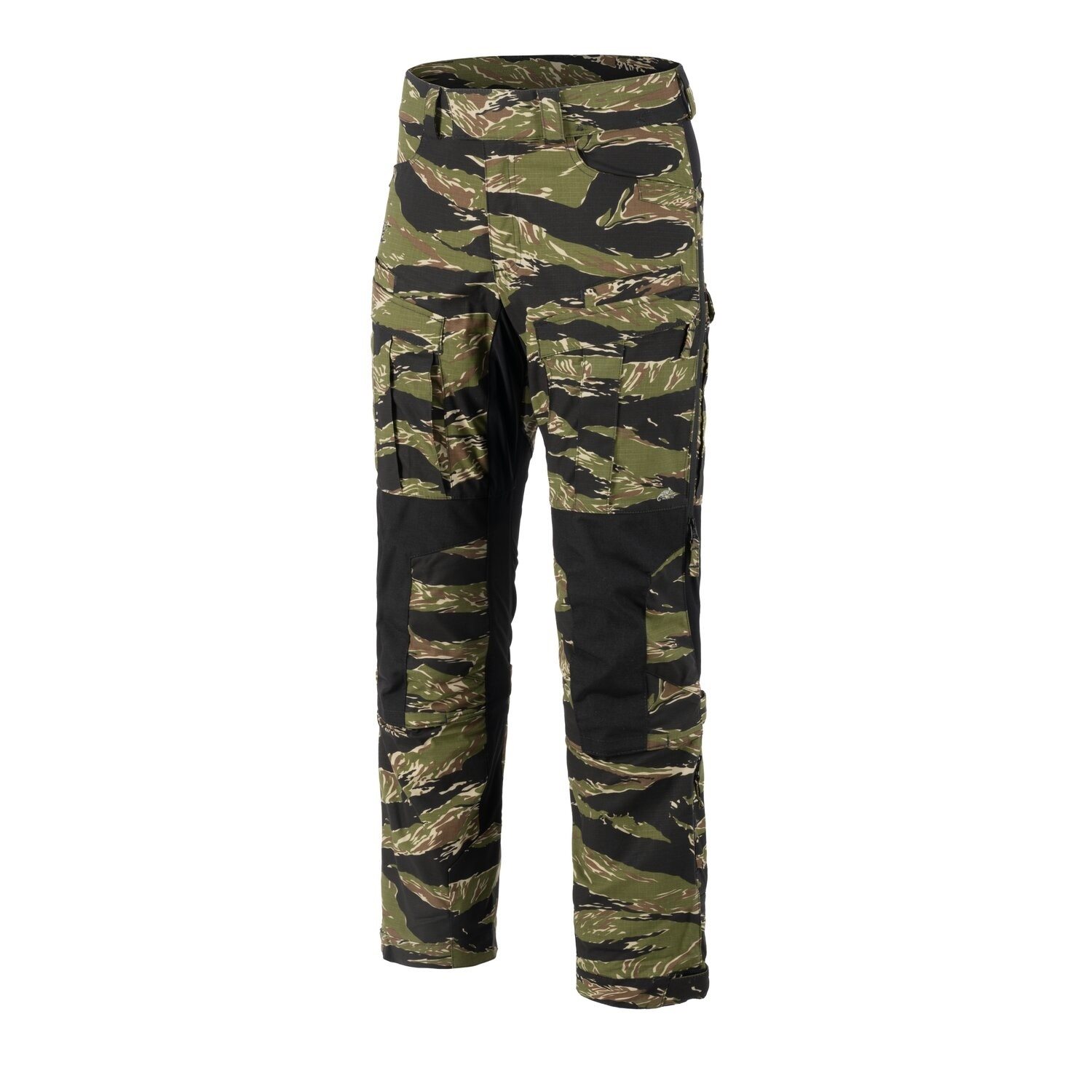 La chiusura dei pantaloni è realizzata con una combinazione di velcro e classica cerniera metallica. I passanti in vita sono sufficientemente larghi per cinture fino a 40 mm di larghezza. Le tasche per le mani sono piuttosto capienti e hanno i bordi rinforzati per evitare danni quando si portano coltelli in tasca. Le tasche anteriori sulle cosce sono doppie. La coppia "posteriore" è ideale per trasportare caricatori di pistola o piccoli oggetti simili. La coppia "anteriore" di tasche cargo è accessibile tramite una cerniera coperta da una patta e offre un ampio spazio di stivaggio. La seconda coppia di tasche cargo si trova sul retro delle cosce. Lo spazio tra le tasche è occupato da una cerniera che, una volta aperta, rivela una rete destinata a ventilare il calore in eccesso. Le tasche posteriori sui glutei possono contenere facilmente un portafoglio, ma non dispongono di alcuna chiusura di sicurezza. L'ultima coppia di tasche si trova sui polpacci e si chiude con una cerniera verticale.