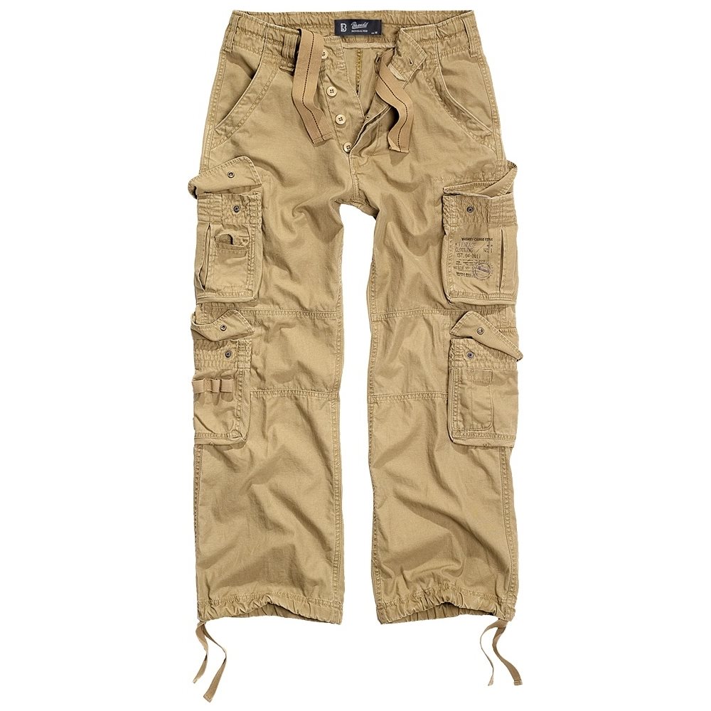 Modello eccezionale di pantaloni del marchio Brandit, disponibile in diverse tonalità di colore e anche in versione mimetica. I pantaloni con tasche laterali a sacca sono realizzati in cotone di alta qualità e il loro taglio ampio garantisce un comfort ottimale. Sulla tasca destra della coscia è presente una stampa ispirata all'abbigliamento militare. La circonferenza della vita può essere regolata con un cordoncino senza utilizzare la cintura, anche se sono presenti i passanti per fissarla. Le estremità delle gambe possono essere strette con un cordoncino inserito nel bordo inferiore. Le numerose tasche offrono uno spazio ampio e versatile. Anche gli strumenti di scrittura trovano il loro posto su questi pantaloni.