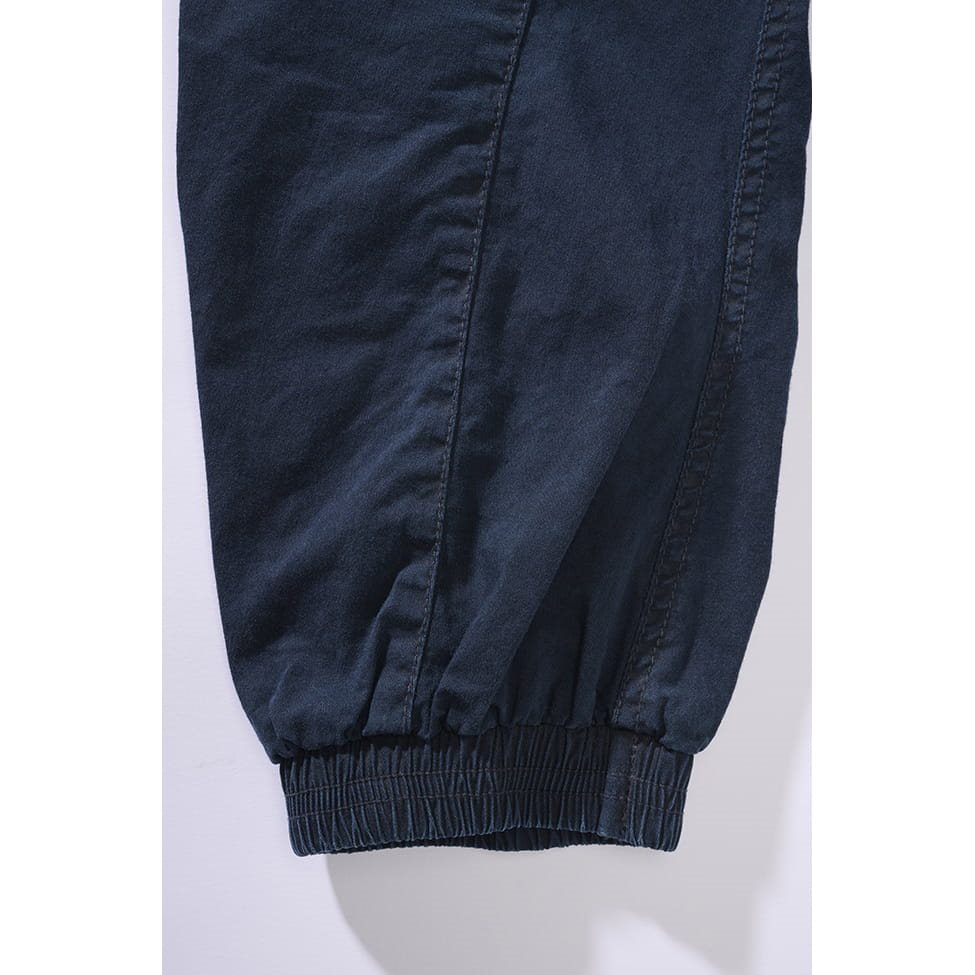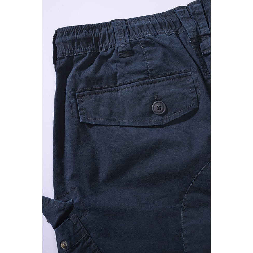Comodi pantaloni estivi dal taglio slim. Sono realizzati in leggerissimo cotone arricchito con fibre di elastan per garantire un maggiore comfort durante i movimenti dinamici. La vita è elasticizzata con possibilità di regolazione tramite coulisse. Chiusura con bottone e cerniera. Le tasche anteriori sono sufficientemente capienti per riporre il portafoglio o i documenti. Le tasche cargo sulle cosce sono dotate di patta con bottone. L'ultima coppia di tasche si trova nella parte posteriore dei pantaloni, anch'esse chiudibili con patta e bottone. Il sedere dei pantaloni è rinforzato con un doppio strato di materiale. Le gambe dei pantaloni sono rifinite con un polsino elastico.