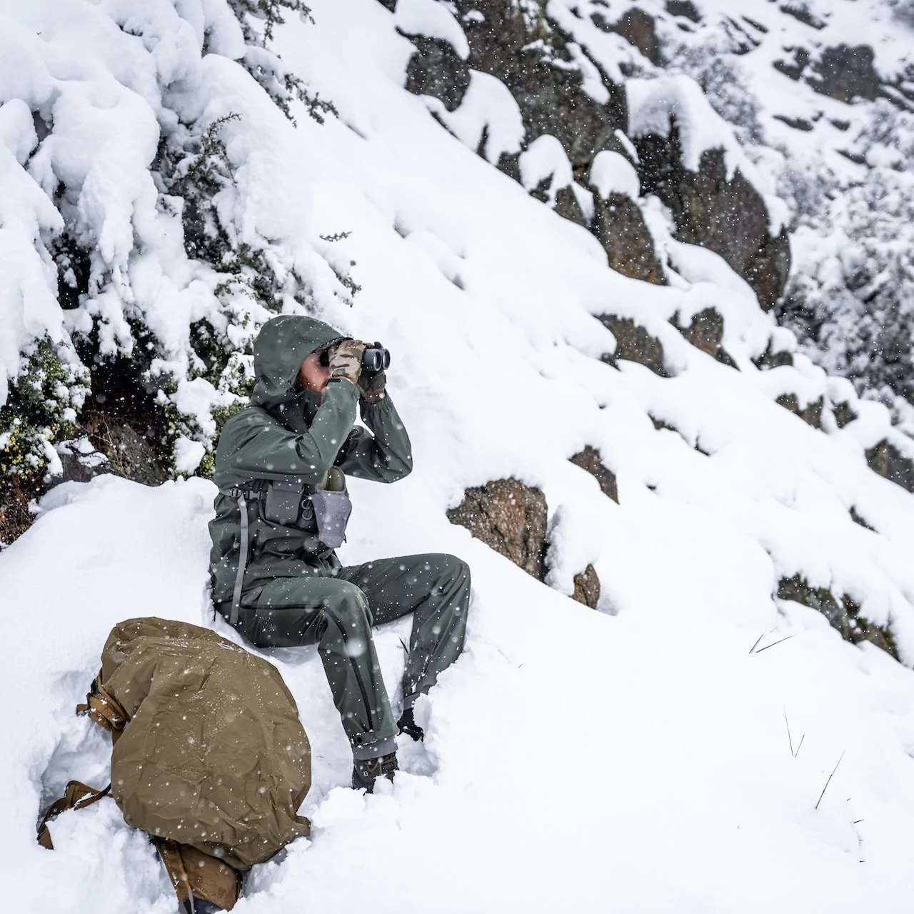Il modello di punta tra i pantaloni impermeabili del marchio EBERLESTOCK. Questi pantaloni sono progettati per essere indossati nelle condizioni più umide e difficili. Sono dotati di una struttura in micro-ripstop elasticizzata e altamente traspirante con una colonna d'acqua di 30.000 mm, che offre una protezione perfetta dagli agenti atmosferici. Le cerniere dei pantaloni sono impermeabili e antivento. I pantaloni sono dotati di bretelle regolabili in base alla taglia, fissate con moschettoni in plastica.