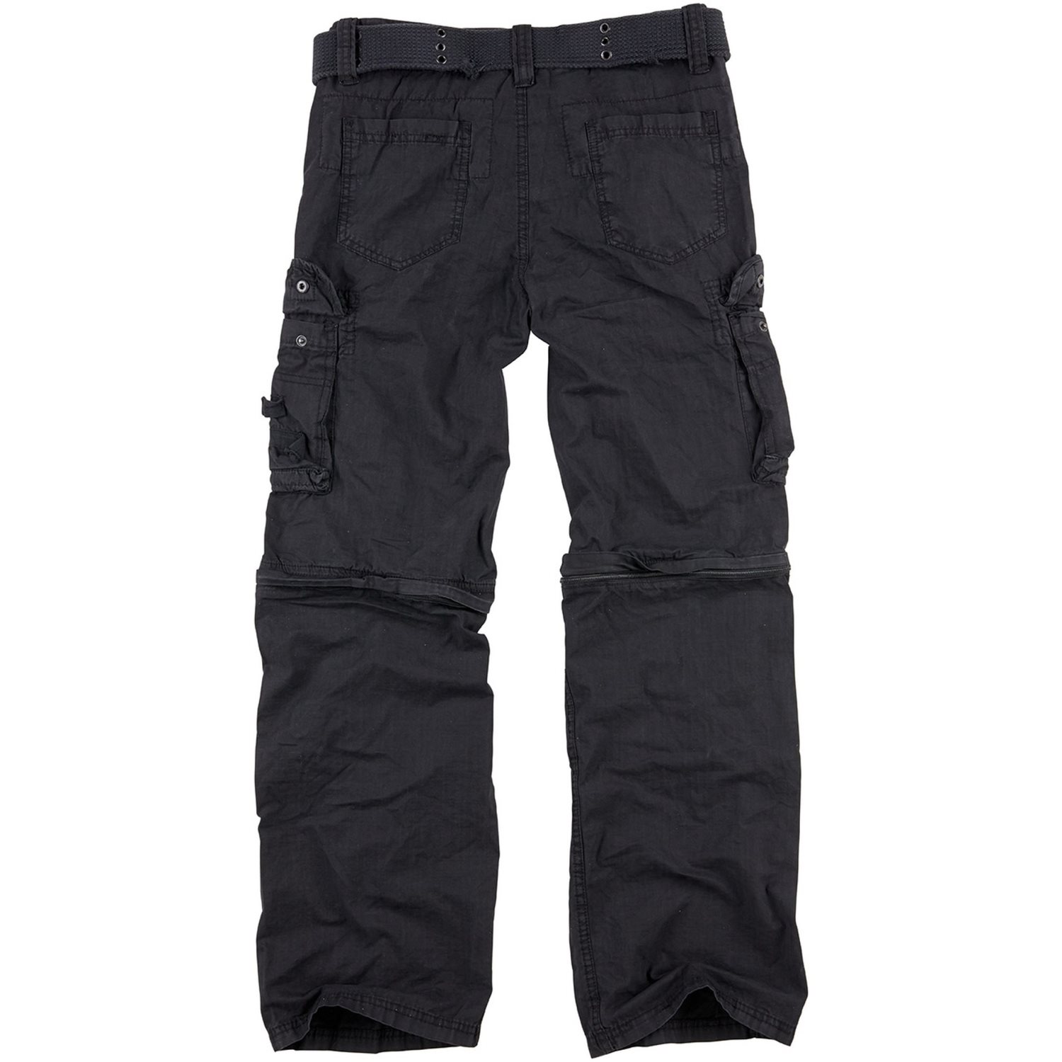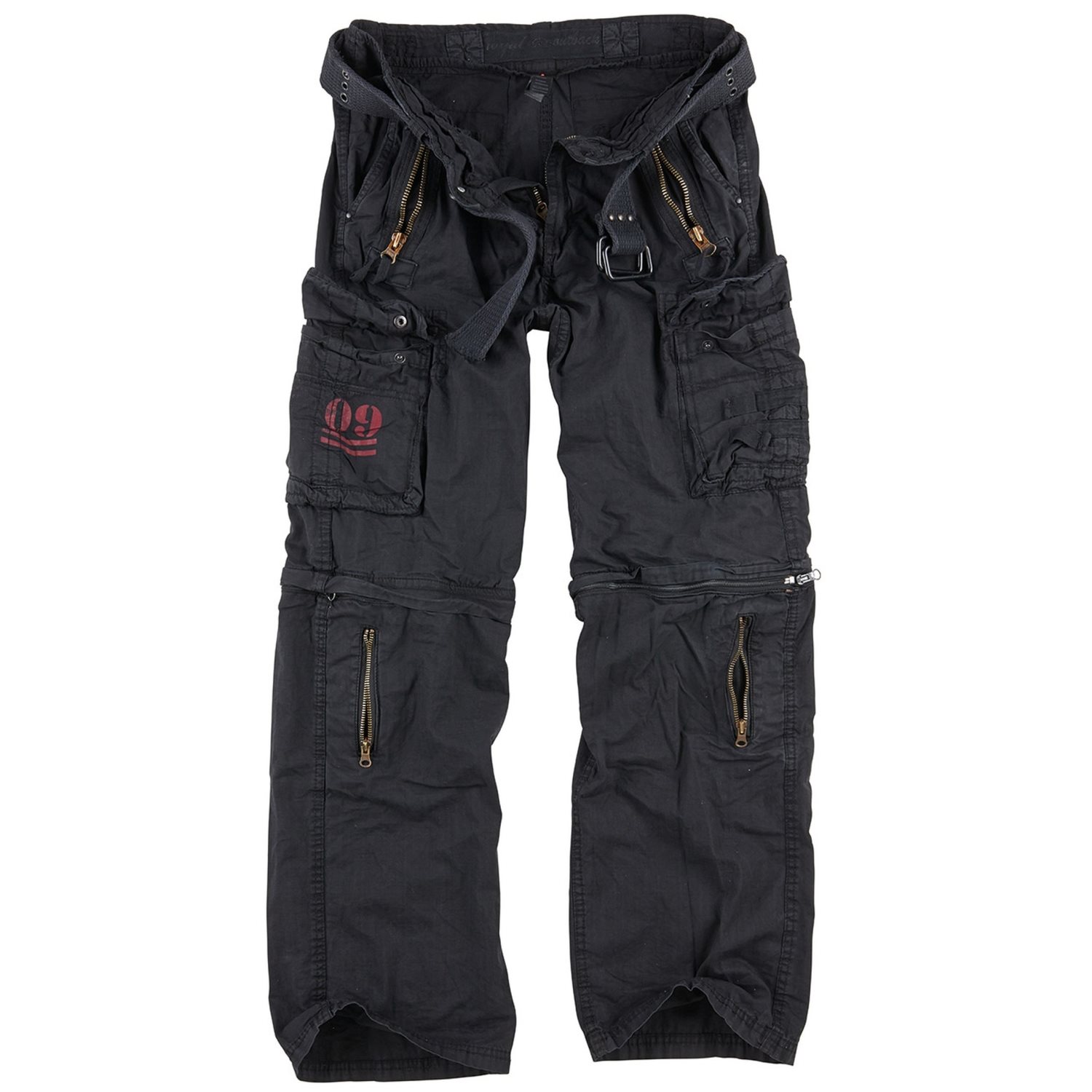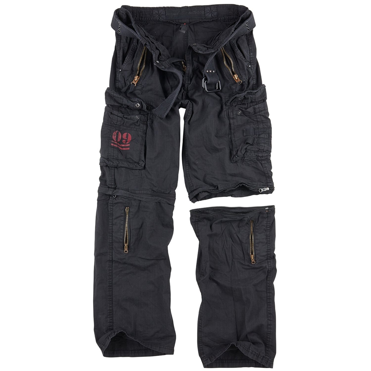 Comodi pantaloni vintage realizzati in cotone leggero, ideali da indossare tutti i giorni. Hanno un taglio ampio, che garantisce un comfort senza pari. I pantaloni si chiudono con la classica combinazione di bottone e cerniera. Sono dotati di dieci tasche in totale, due classiche sulle mani, sulle quali si trovano due tasche più piccole chiudibili con cerniera. Sulle cosce sono presenti altre due tasche chiudibili con bottoni automatici. Sul retro dei pantaloni sono presenti altre due tasche adatte per il portafoglio o il cellulare. L'ultima coppia di tasche si trova sulle gambe staccabili.