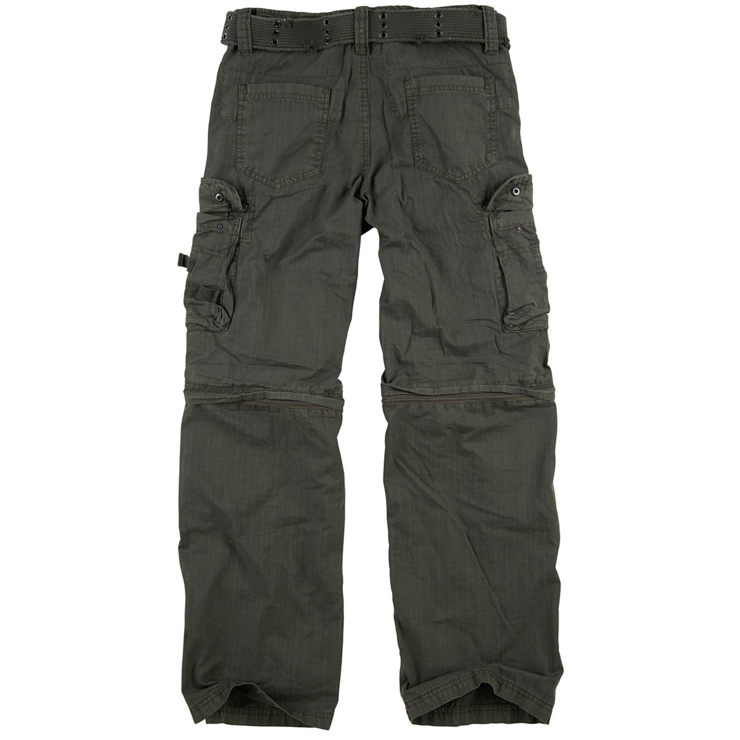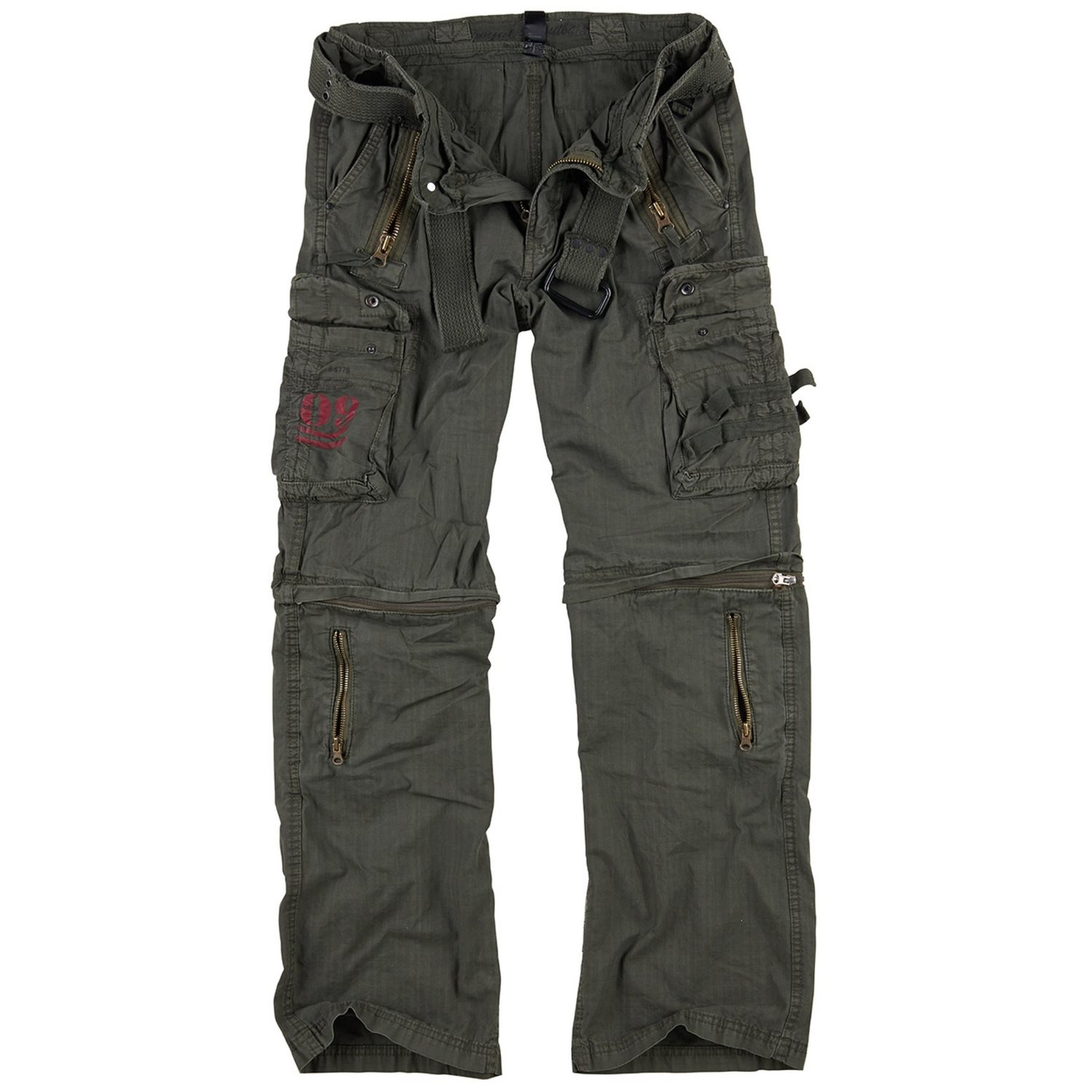 Comodi pantaloni vintage realizzati in cotone leggero, ideali per l'uso quotidiano. Hanno un taglio ampio, che garantisce un comfort senza pari. I pantaloni si chiudono con la classica combinazione di bottone e cerniera. Sono dotati di dieci tasche in totale, due classiche sulle mani, sulle quali si trovano due tasche più piccole chiudibili con cerniera. Sulle cosce sono presenti altre due tasche chiudibili con bottoni automatici. Sul retro dei pantaloni sono presenti altre due tasche adatte per il portafoglio o il cellulare. L'ultima coppia di tasche si trova sulle gambe staccabili.