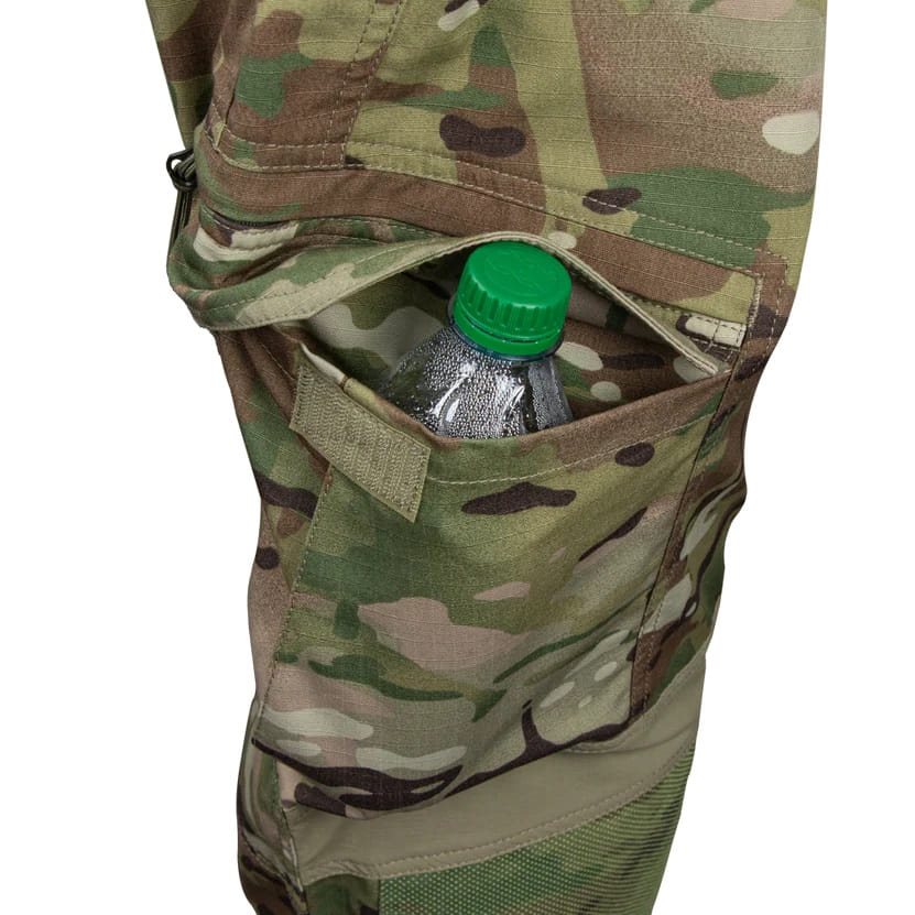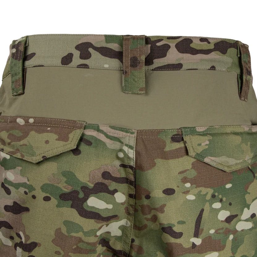 I pantaloni presentano un totale di sei tasche. Ai lati sono presenti due tasche oblique per le mani che, grazie a scomparti nascosti, possono contenere un caricatore in caso di necessità. Inoltre, i bordi sono rinforzati con un doppio strato di tessuto, quindi non si deve temere di utilizzarli per appendere coltelli a serramanico. Sulle cosce sono presenti due tasche cargo a basso profilo ma capienti, che si chiudono con una patta con chiusura in velcro. L'ultima coppia di tasche si trova sui glutei e anche queste si chiudono con una patta. Le ginocchia sono rinforzate e dotate di una tasca per le protezioni. Per migliorare la mobilità sopra i glutei, è presente un pannello in materiale elasticizzato a quattro vie. I pantaloni dispongono di un totale di sette passanti per cinture larghe fino a 50 mm e si chiudono con la classica combinazione di bottone metallico e cerniera YKK.