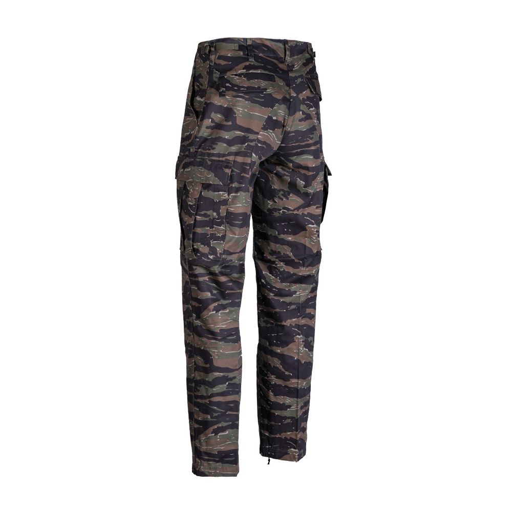Pantaloni comodi dal taglio US BDU (Battel Dress Uniform) in mimetica britannica DPM. Ginocchia e seduta rinforzate. Cinghie di regolazione per la vita. Chiusura con bottoni. Gambe con lacci di regolazione. Due tasche laterali per le mani. Ulteriori informazioni