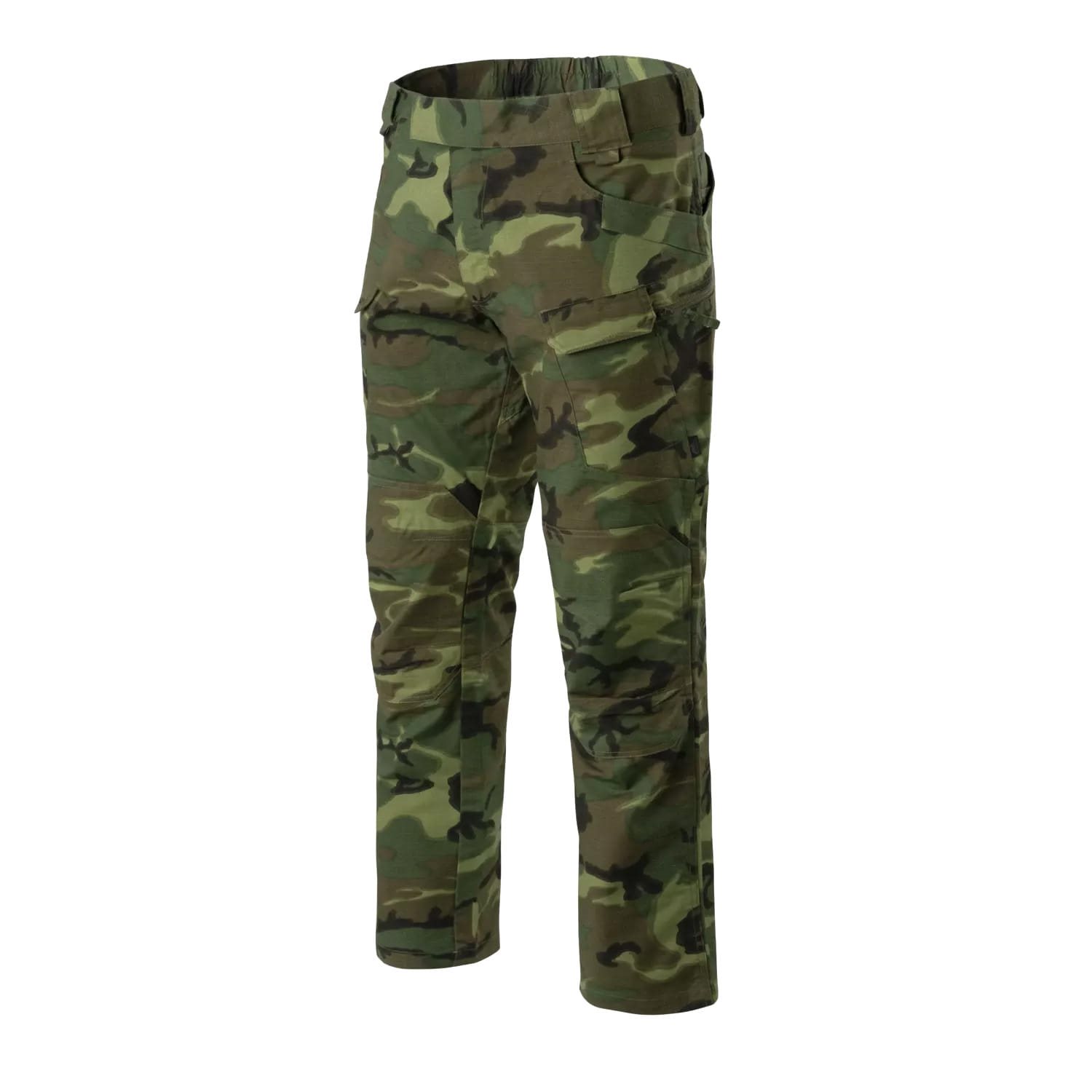 Pantaloni tattici realizzati in materiale elastico bidirezionale, ideali per l'uso quotidiano sia civile che professionale. Il materiale, composto da una combinazione di poliestere, cotone ed elastan, è relativamente leggero e si asciuga rapidamente. Il taglio dei pantaloni privilegia il comfort durante l'uso prolungato e, grazie alle cuciture rinforzate nei punti esposti, i pantaloni sono resistenti alle sollecitazioni meccaniche. Nei rinforzi sulle ginocchia è possibile inserire protezioni in neoprene. Tutte le cerniere sono prodotte da YKK.