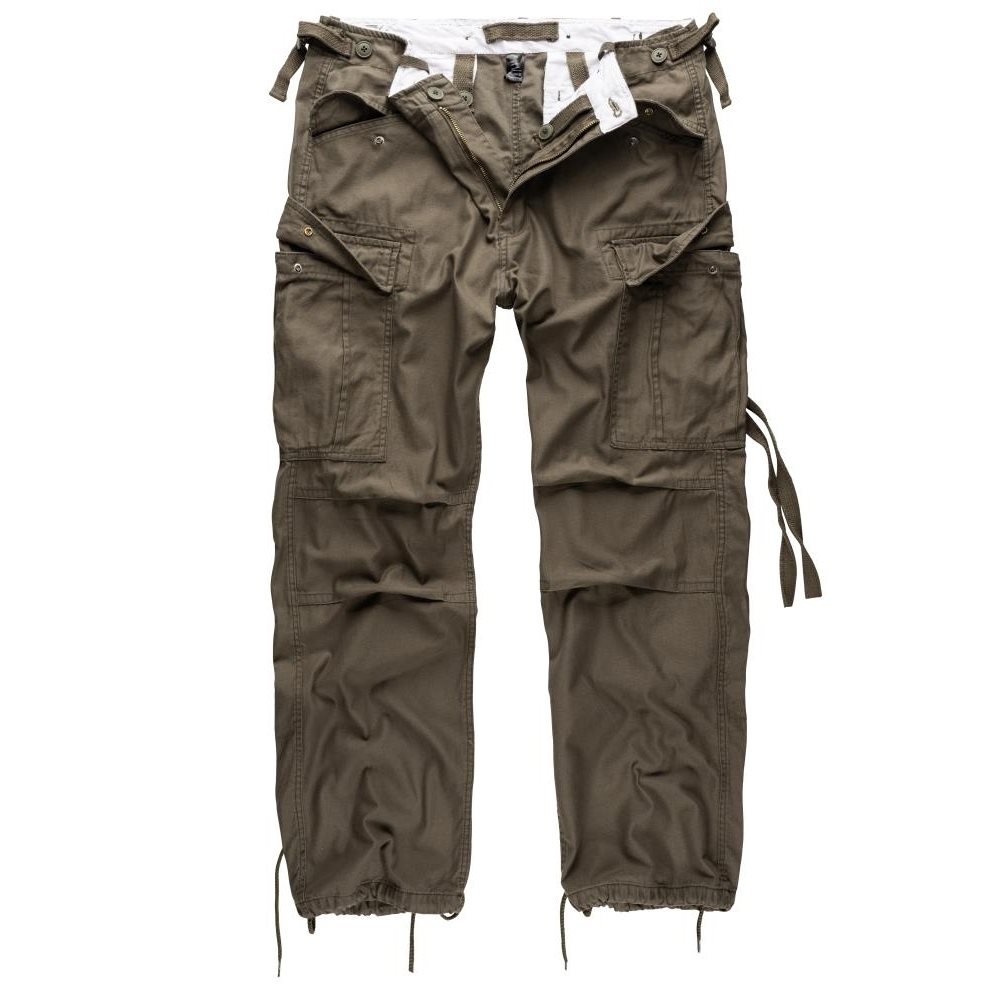 Pantaloni comodi cuciti secondo il leggendario modello M65. Sono molto pratici, hanno un totale di 7 tasche con cuciture rinforzate e il tessuto nella zona delle ginocchia è anatomicamente sagomato. La larghezza delle gambe può essere regolata nell'orlo inferiore con lacci, la patta è con cerniera e bottone. È possibile utilizzare una cintura larga fino a 5 cm.