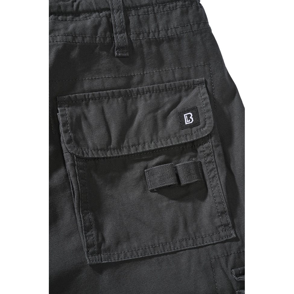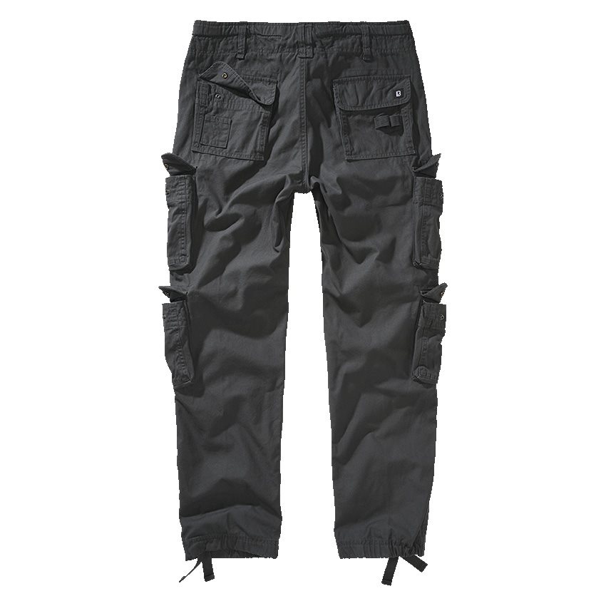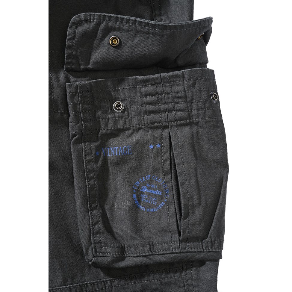 Comodi pantaloni a zampa dal taglio slim realizzati in robusto cotone in stile vintage. La chiusura dei pantaloni è a bottoni e, se necessario, è possibile stringere la vita tramite un cordoncino. In vita sono presenti due classiche tasche a filetto, che sulle cosce e sulle ginocchia sono integrate da altre quattro tasche a sacca con chiusura a patta e bottoni a pressione. I polsini delle gambe possono essere stretti tramite fasce in tessuto.