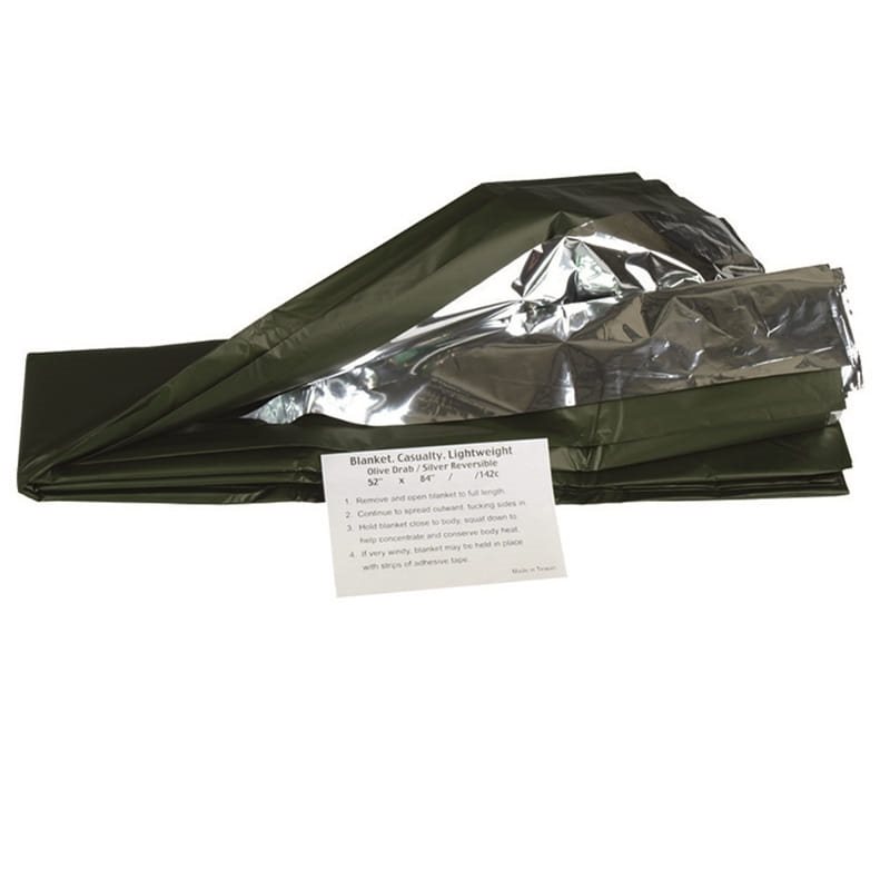 Indispensabile in caso di emergenza, questa pellicola garantisce il comfort termico in caso di incidenti. Un lato è verde opaco e l'altro è lucido con superficie in alluminio. Dimensioni: 215 x 130 cm. Peso: solo 54 g.