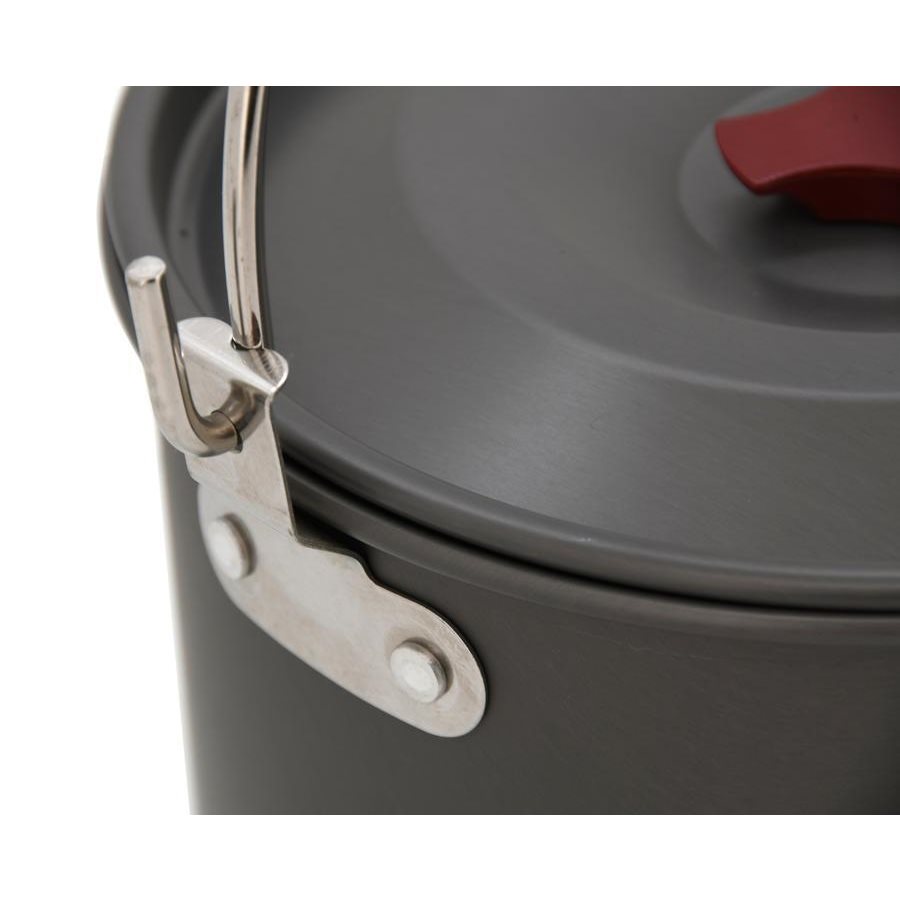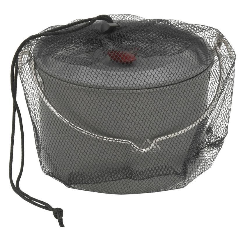 Leggero pentolino in alluminio con manico per poterlo appendere sopra il fuoco. La capacità di 4 litri consente di preparare piatti più elaborati o pasti per più persone. Il pacco include una borsa da trasporto in rete.